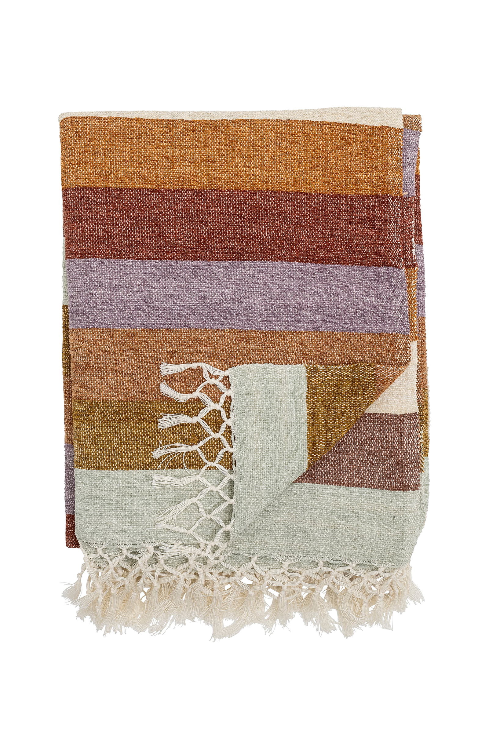 Pläden lucilla från bloomingville är en mjuk pläd tillverkad av återvunnen bomull, med mjuka naturliga nyanser och dekorativa fransar. Perfekt för att skapa en mysig atmosfär.
