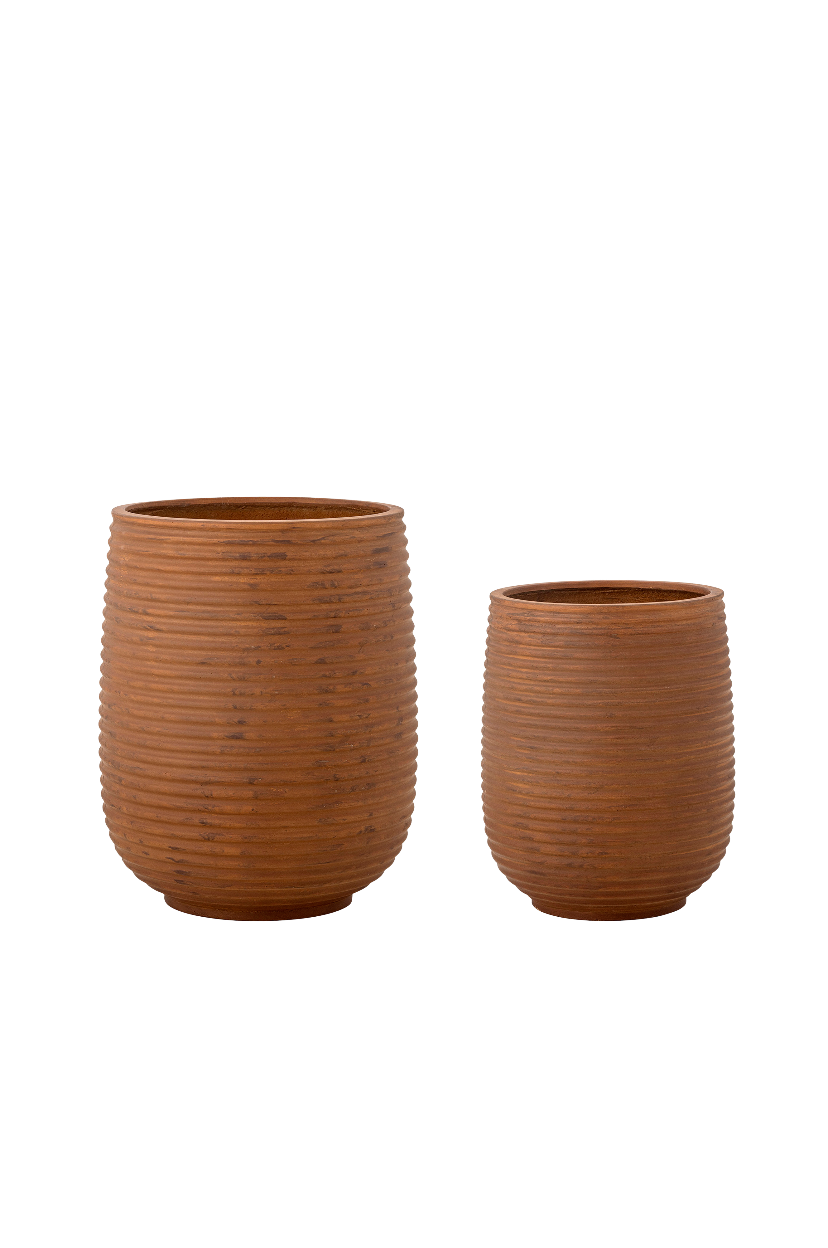 mesola flowerpot covers från bloomingville är ett set med två snygga och lätta covers i en vacker rostfärg. Dessa rymliga krukor är perfekta för att visa upp dina växter, både inomhus och utomhus. Deras tidlösa design gör dem till ett mångsidigt element som passar in i alla inredningar. Blomkrukorna är testade för att klara temperaturer från -40 till +40 grader, vilket gör dem både funktionella och lämpliga för olika klimat. Mått: d36xh45/d45xh56 cm, set om 2