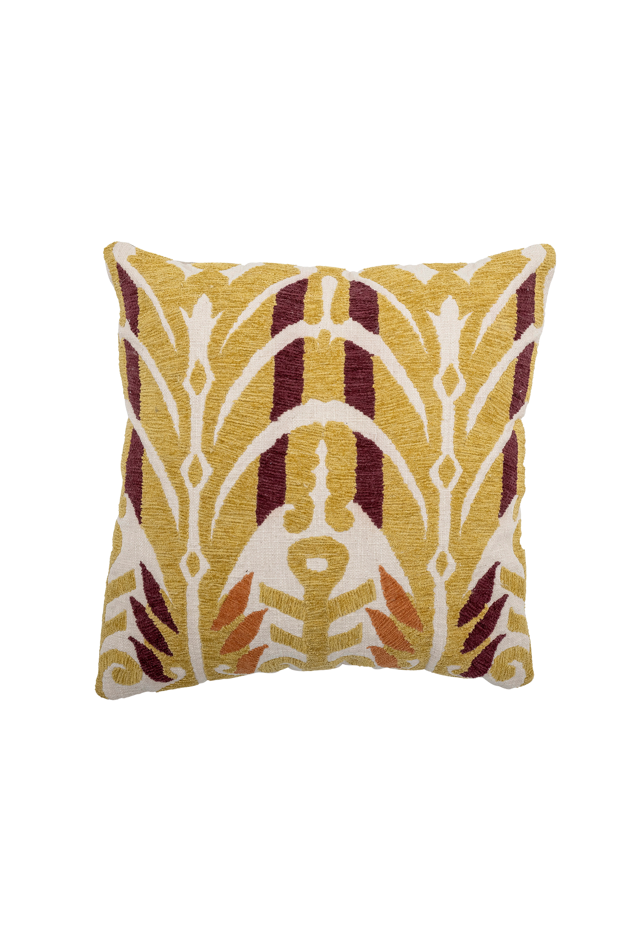 Kudden newbury från creative collection är en dekorativ och detaljrik kudde. Den är vävd och har vackra broderier i härliga gula, orange, vita och mörklila färger. Baksidan är gjord av canvas i en naturlig färg. L45xw45 cm