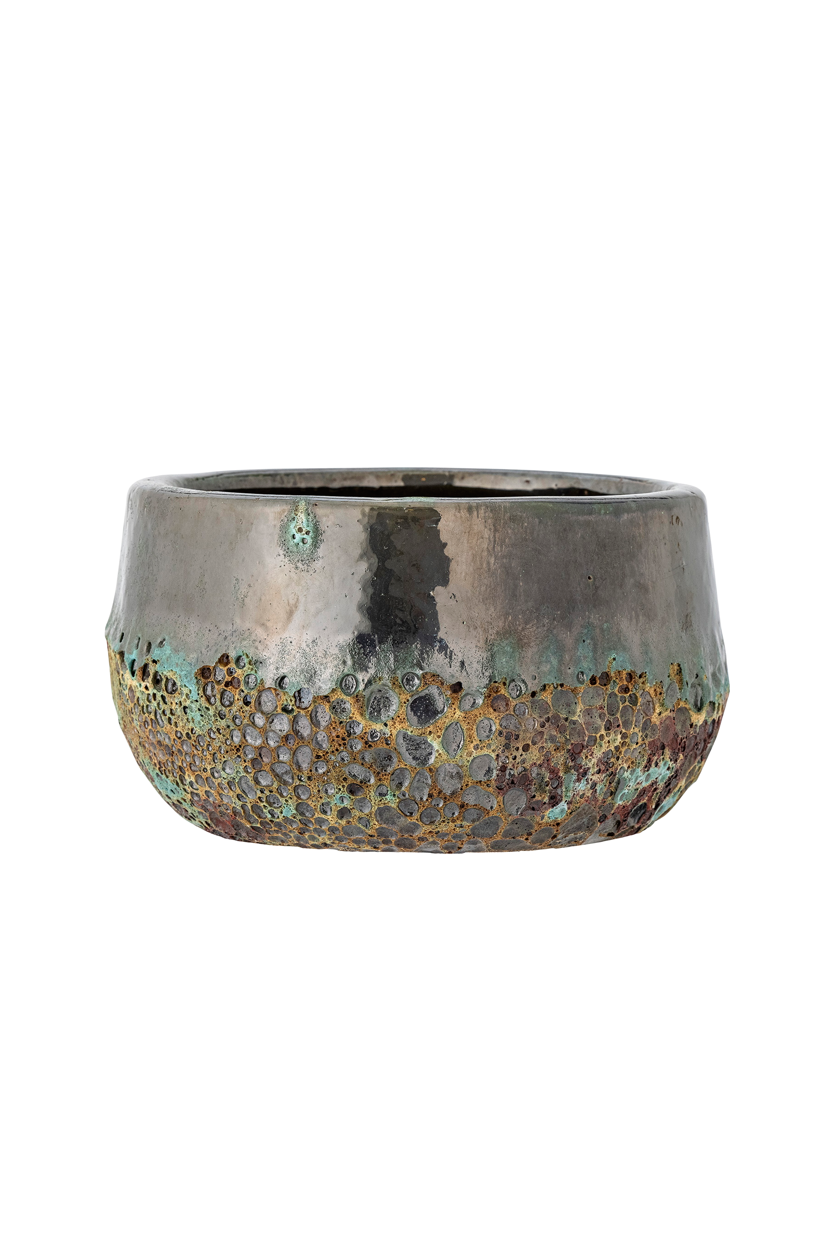 Blomkrukan nira från bloomingville är ett vackert och dekorativt inslag i trädgården. Den är gjord av terrakotta i gröna och mörka nyanser med en blandning av blank och rustik glasyr, vilket skapar en fantastisk effekt. Den är perfekt för att skapa en mysig atmosfär i trädgården eller på uteplatsen. Den rustika blomkrukan kan med fördel stylas med krukor i olika höjder. D29xh16 cm