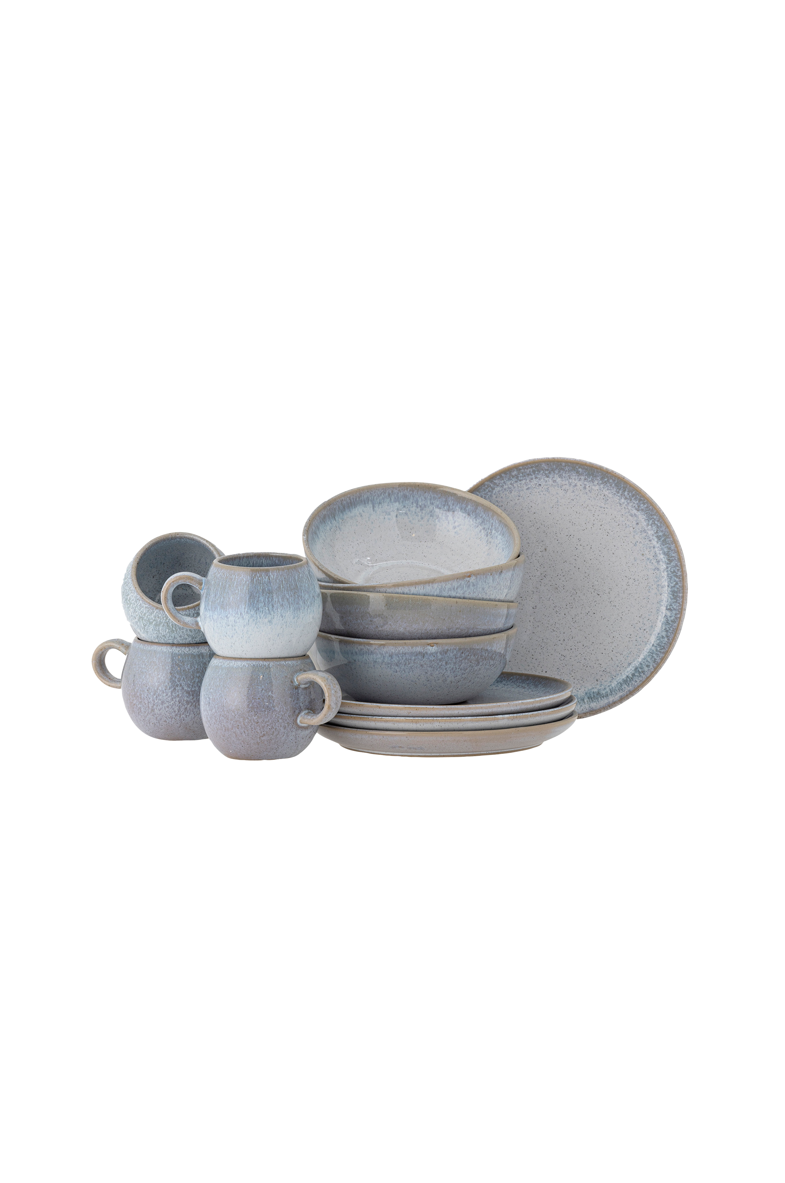 Frukostsetet paula från bloomingville har en harmonisk blandning av blå och grå nyanser. Setet erbjuder en perfekt balans mellan funktionalitet och stil och passar för alla tillfällen. Den spräckliga glasyren ger djup till designen och säkerställer att varje produkt är unik. paula setet är tillverkat av stengods och tål både diskmaskin och mikrovågsugn. Det innehåller 4 x paula koppar (d9xh8 cm), 4 x paula tallrikar (d20 cm) och 4 x paula skålar (d16,5xh5 cm).