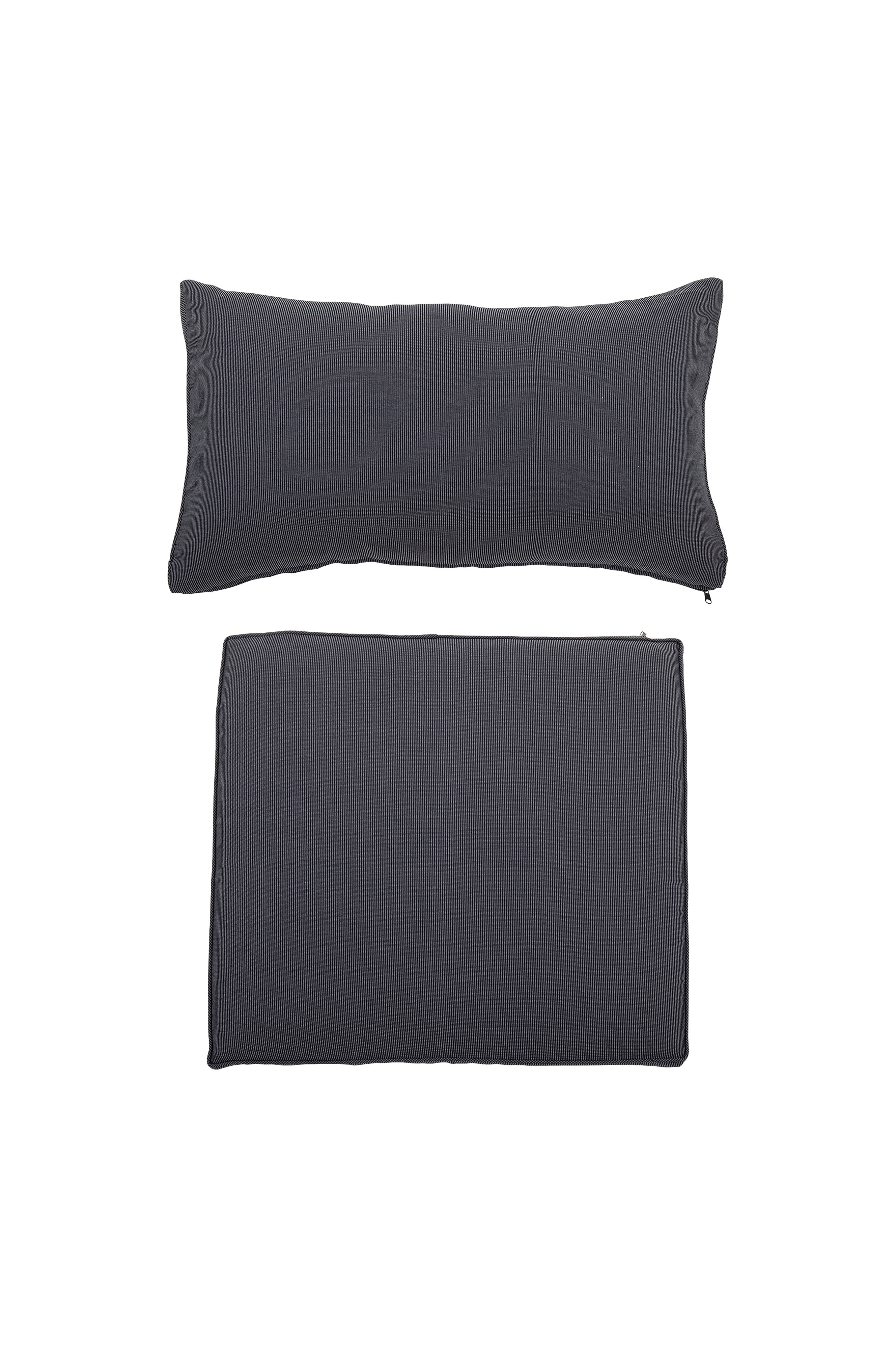 pavone & mundo kudden från bloomingville har ett överdrag i vävd polyester i en elegant mörkgrå färg. Den mjuka polyesterfyllningen ger en bekväm sittupplevelse, och dynorna är utformade för att passa perfekt med mundo- och pavone -stolarna. Överdraget är tvättbart i 30 grader. Set med 2 kuddar. Mått: l66xh9xw58/l75xh45xw23 cm