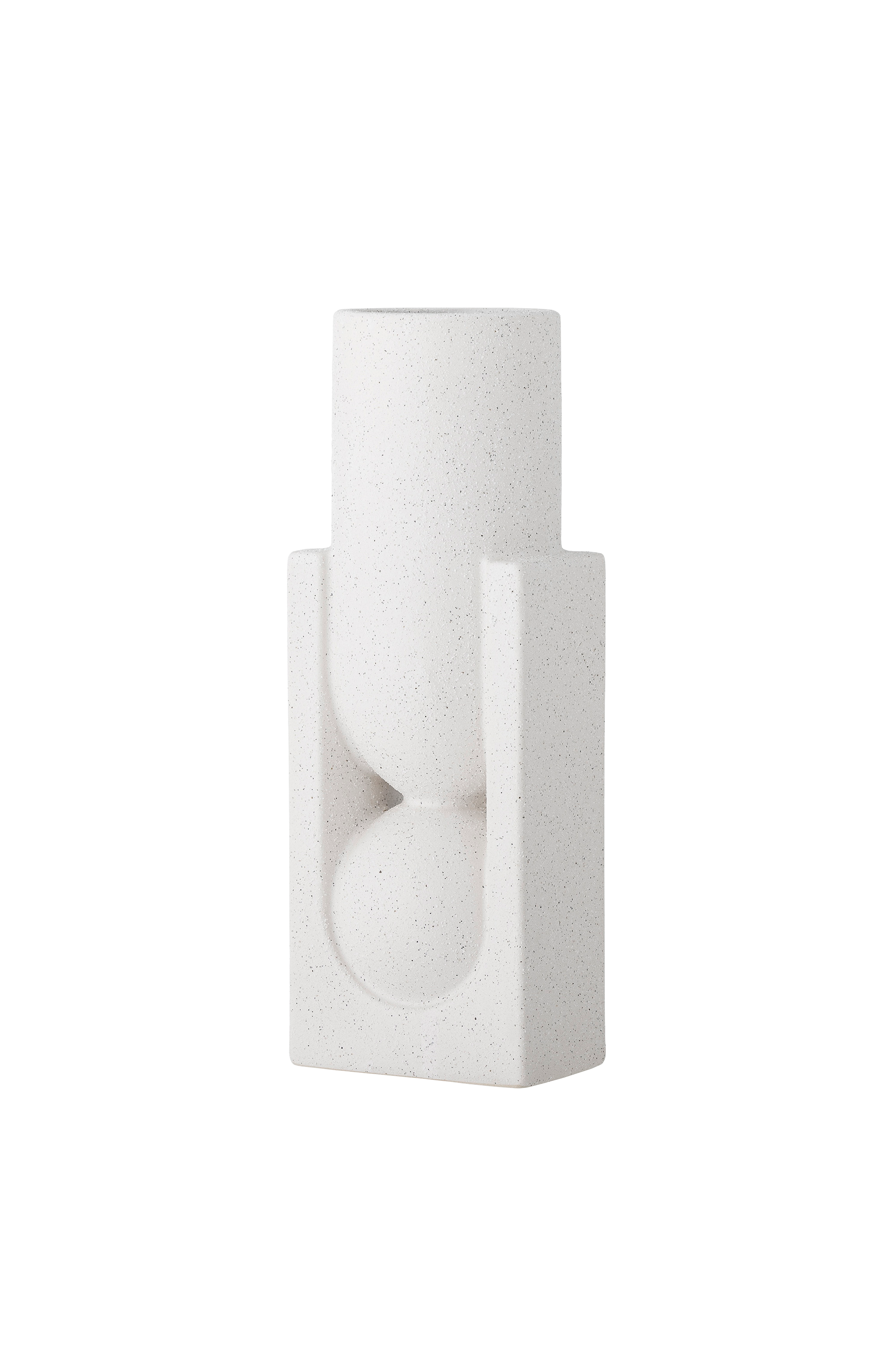 salome vasen från bloomingville är tillverkad av stengods och utformad med grafiska former. Den expressiva designen mjukas upp av den vita glasyren, vilket ger vasen ett lugnt utseende. Mått: l12xh34xw10,5 cm