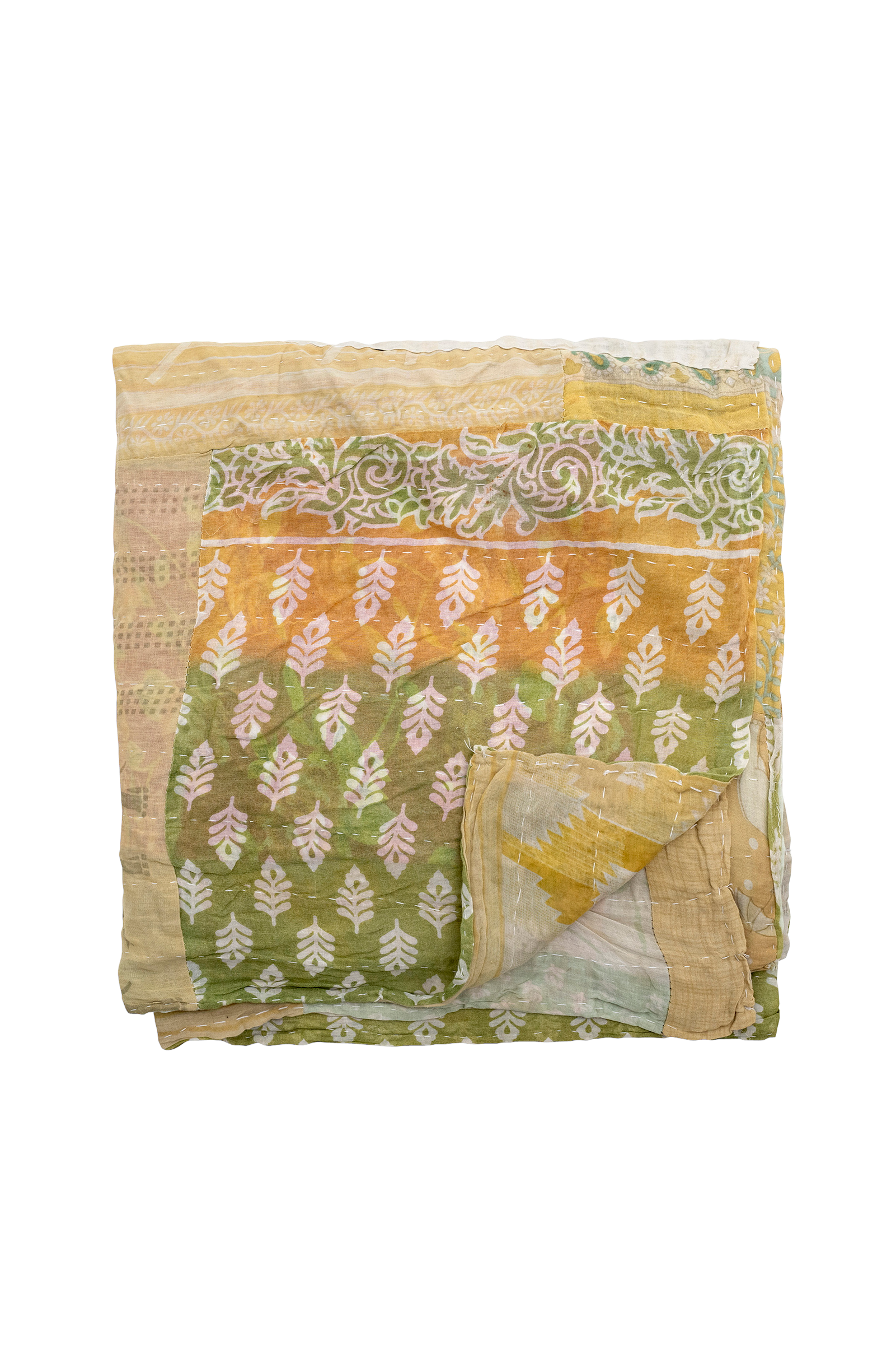 Sari-täcket från bloomingville är tillverkat av saris. Varje quilt är unik och varierar i design. Pläden är utsmyckad med kanthasömmar som ger karaktär och mjukhet.