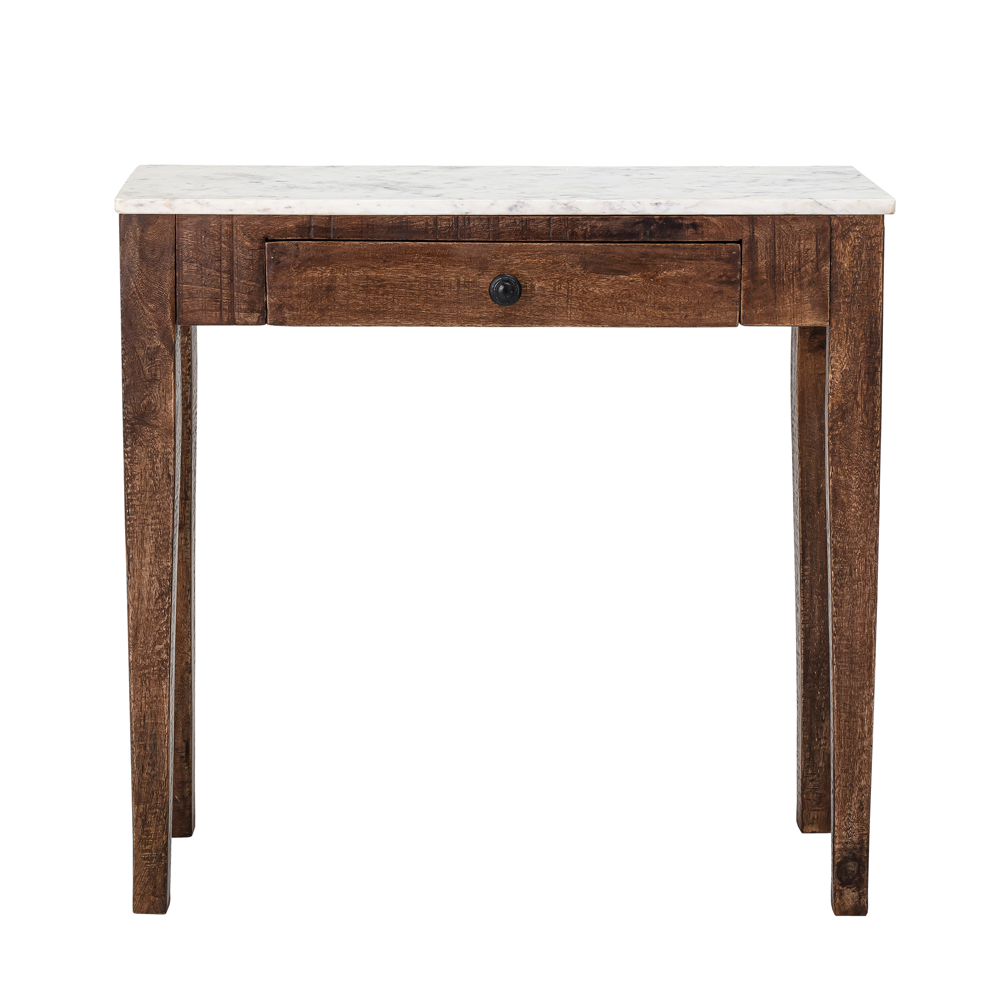 Sidobord för hallen eller köket. Trästomme med marmortopp och låda. Marmor är ett levande material och varje skiva är unik. Levereras omonterat.
