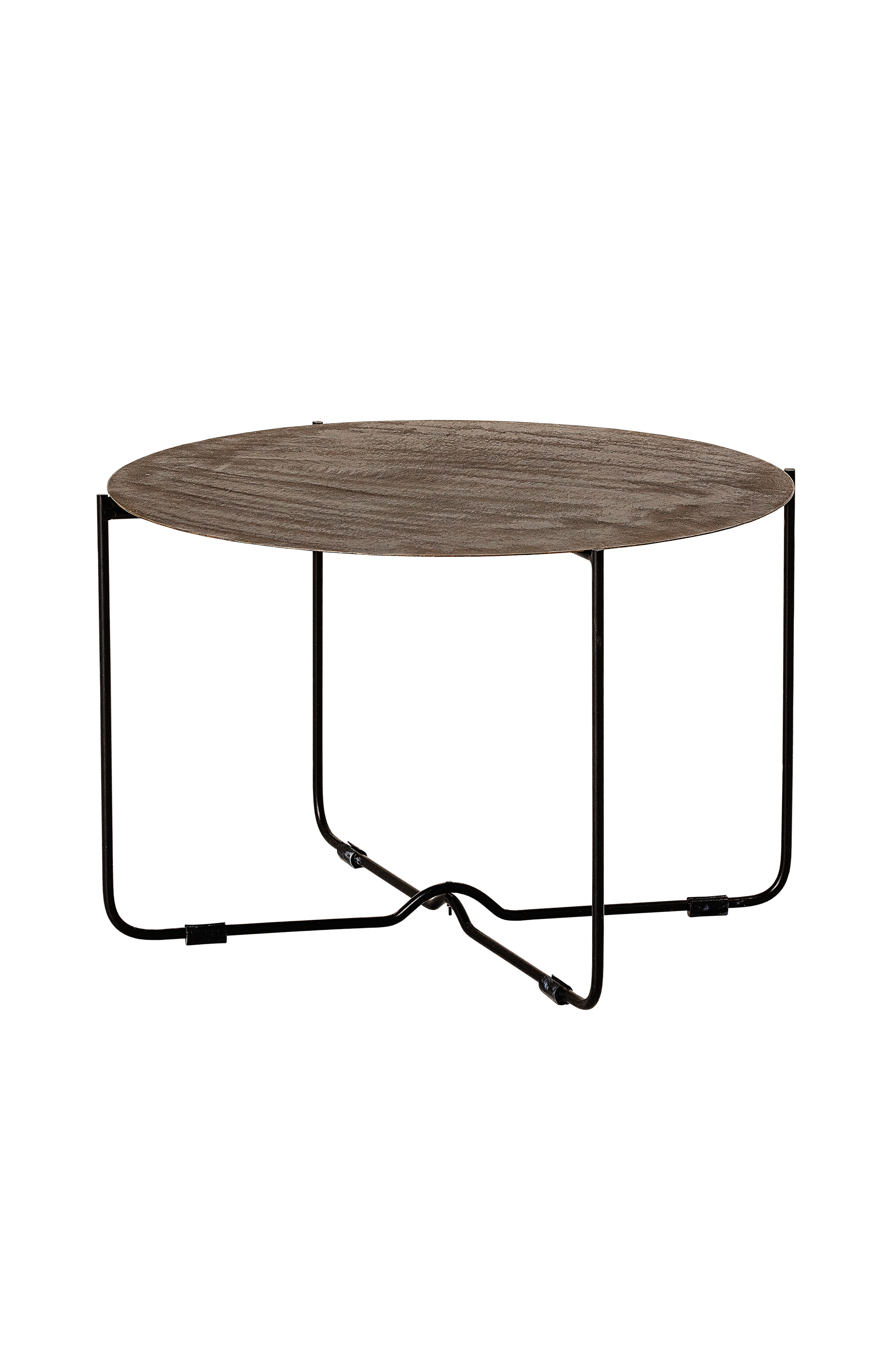 Soffbord av svart metall med sliten yta, vilket ger en trendig, obearbetad stil. Diameter: 64 cm. Levereras omonterat.