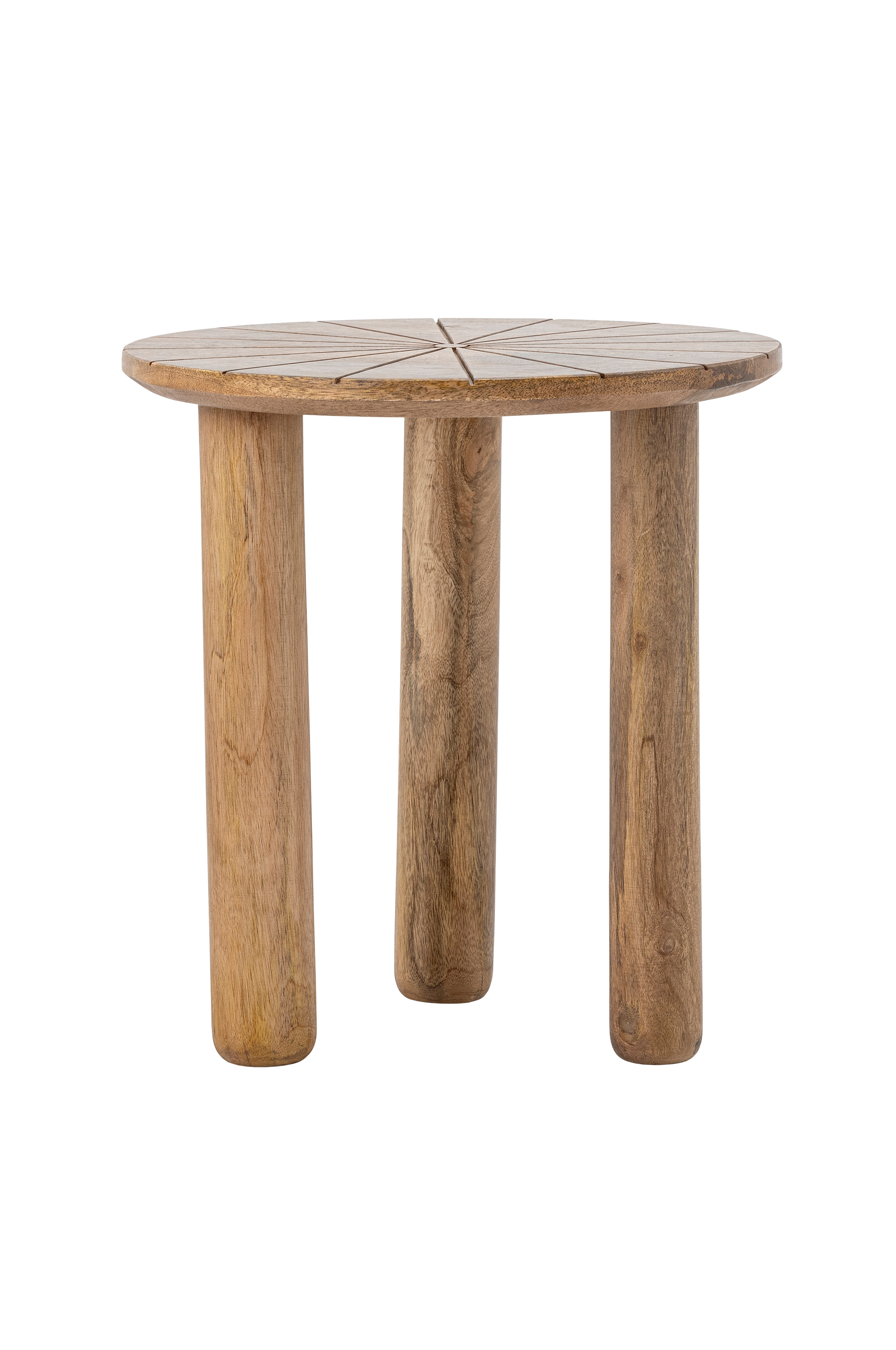 stella soffbord från creative collection är tillverkat av mangoträ. Bordsskivan är dekorerad med ett handsnidat mönster som en vacker detalj. Det dekorativa sidobordet är utformat med tre ben, vilket ger det ett lätt och elegant utseende. Mått: d40xh44 cm