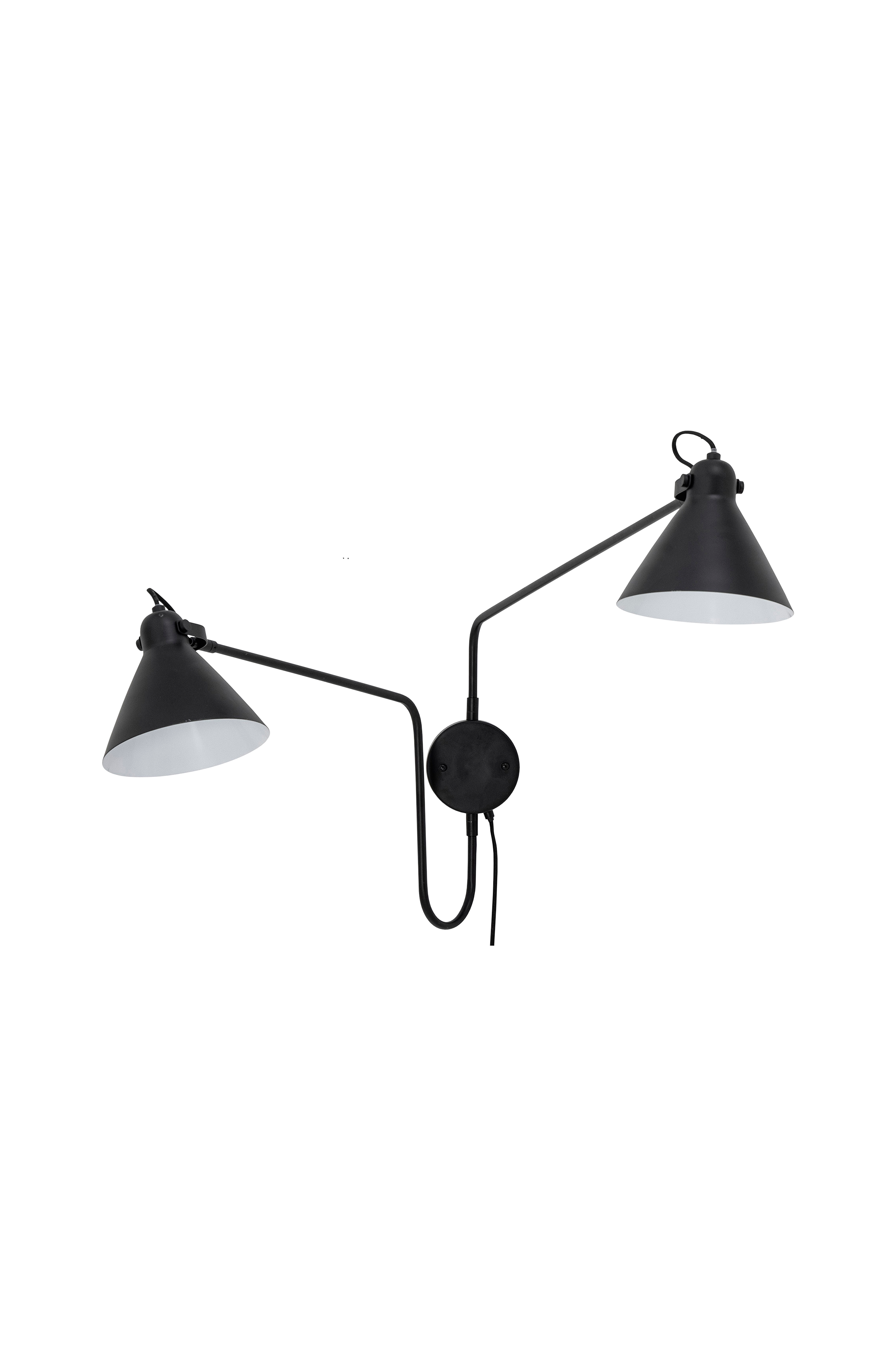 Felicity vägglampa från Bloomingville är en klassisk lampa i nordisk stil, tillverkad av svart järn, med en modern twist. Den har två fina lampskärmar som enkelt kan vridas för att rikta ljuset på bästa sätt. Sätt upp den nära sängbordet, i vardagsrummet eller för att få in ljus i din favoritmyshörna. Mått: L160xH57xB20 cm. Lampskärmens mått: Ø20cmxH19cm