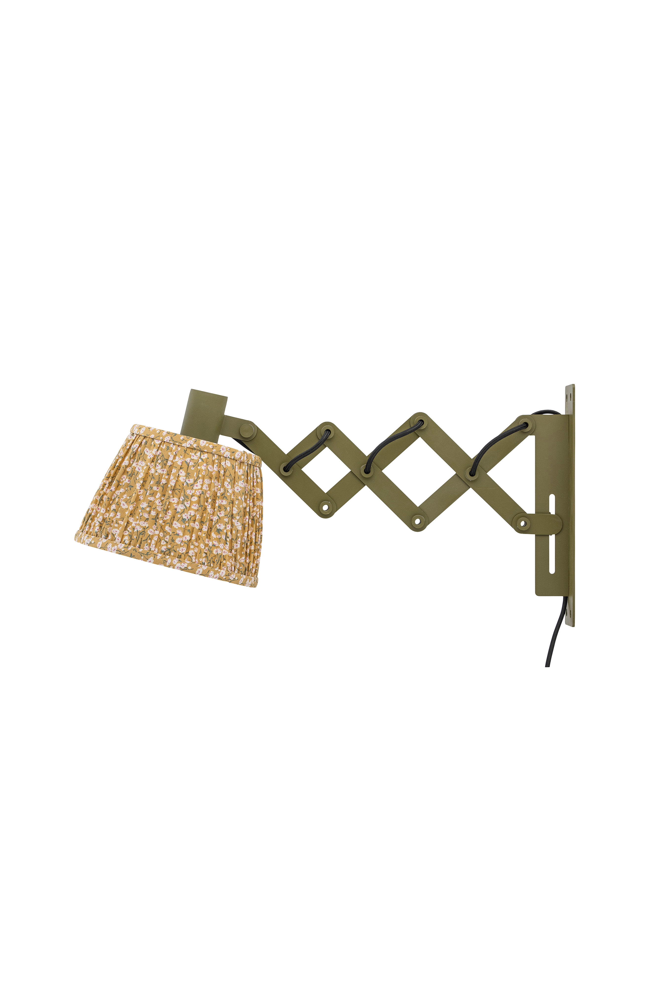 Vinni vägglampa från Bloomingville är en praktisk lampa av järn i en vacker, grön färg med klassisk lampskärm av polyester. Lampan i romantisk design med blommor passar fint på arbetsbordet eller i läshörnan, och du kommer älska dess ljus. Kan fällas in.