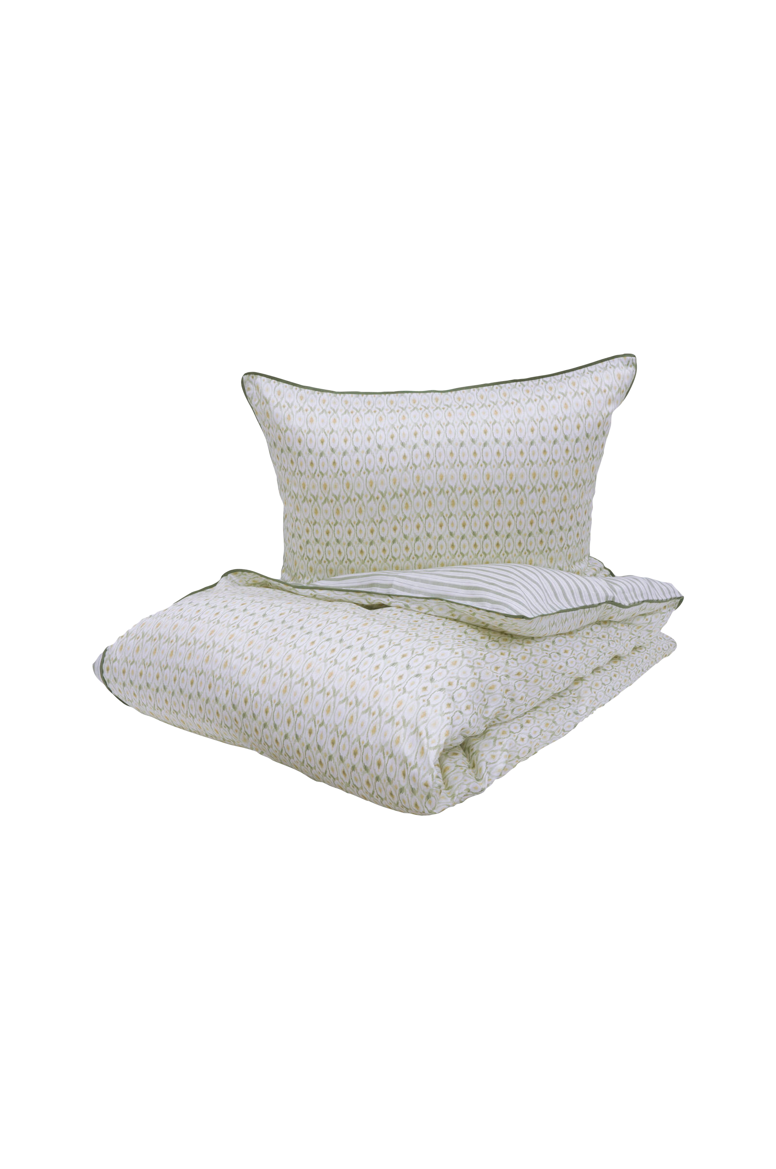 Ge sovrummet en lekfull och personlig touch med detta dubbelfasade bäddset. Svala färger och en utsökt kvalitet känns som en sommardröm mot huden. 100% bomullssatäng tc 220. Dragkedja i botten av örngott och påslakan och kontrastpiping på påsklakan och örngott. Bäddset består av 1 påslakan och 1 örngott 50x60