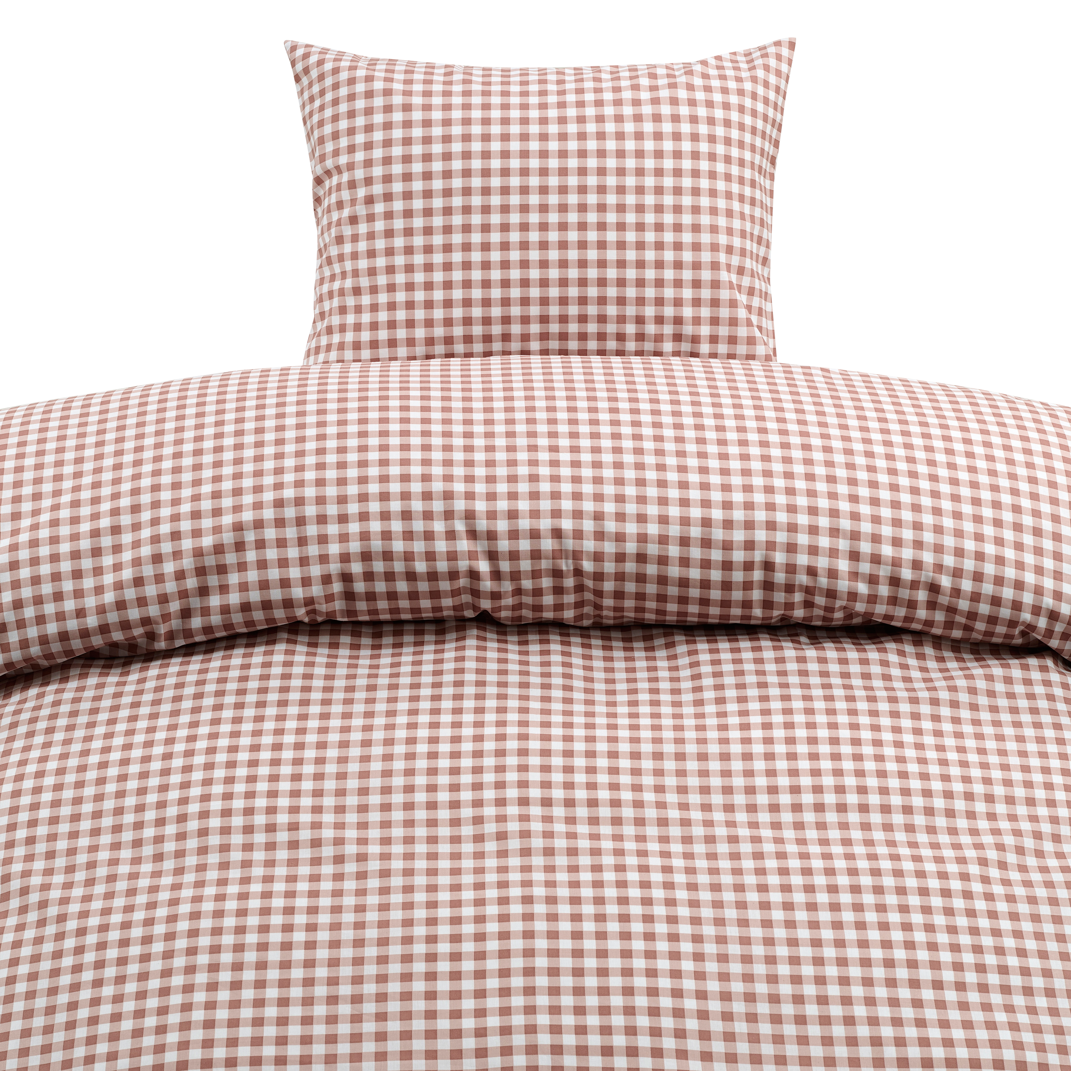 Borganäs bäddset med smårutigt mönster. Ett påslakan (150x210 cm) och ett örngott (50x60 cm), tillverkade av 100% bomull.
