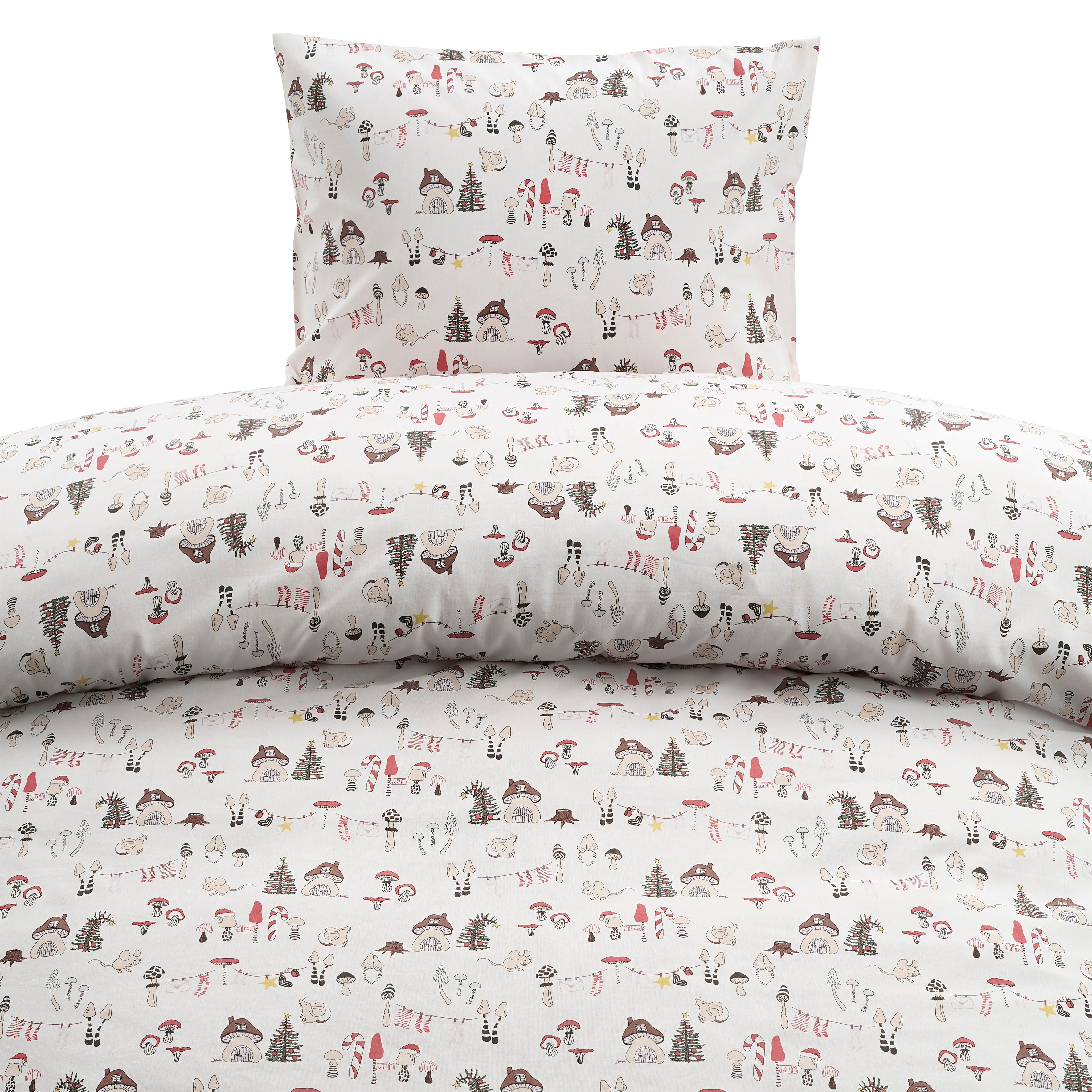 Bäddset bestående av ett örngott och ett påslakan. Bäddsetet har ett tryckt mönster och är tillverkat i mjuk och skön bomullskvalitet. Borganäs bäddset finns i flera olika mönster för både enkel- och dubbelsäng.