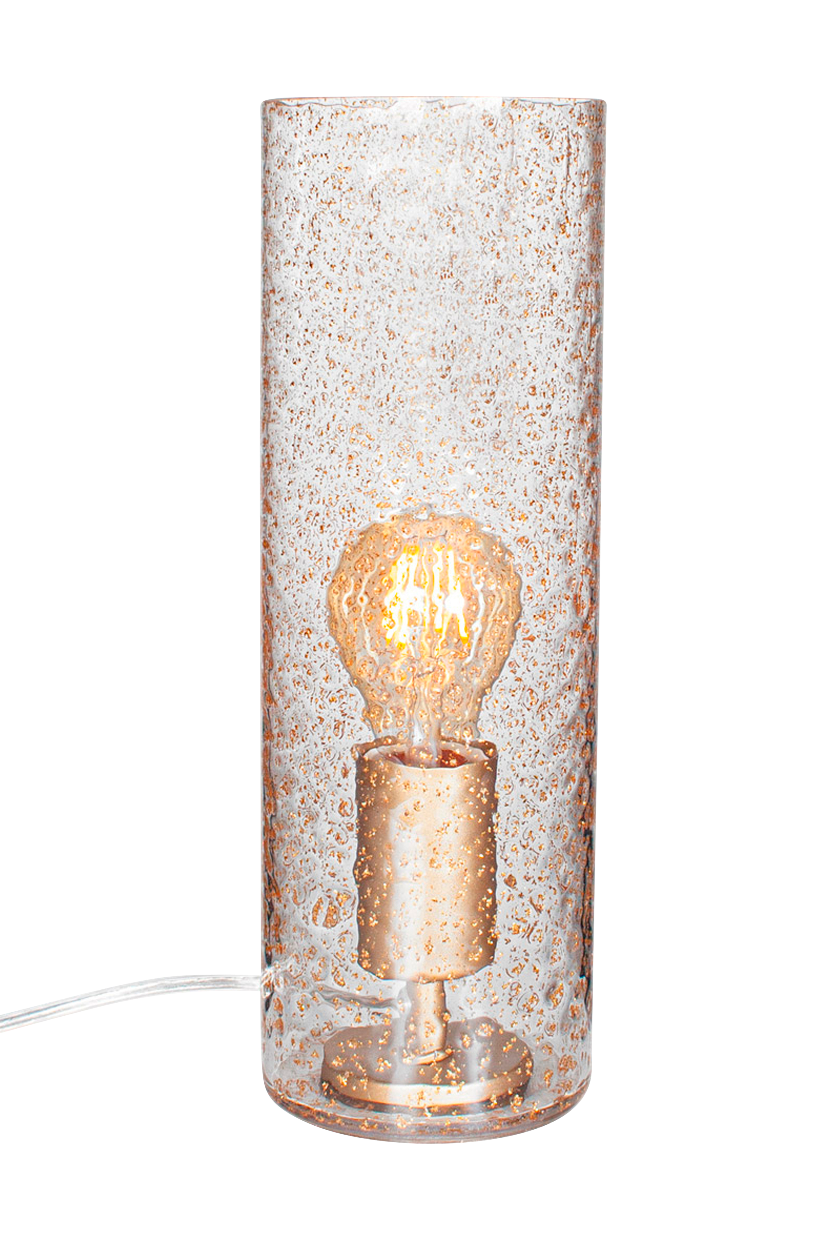 Denna vackra bordslampa är den lägre modellen av Golden bordslampa med en totalhöjd på 30 centimeter och en diameter om 10 centimeter. Med sin nätta uppsyn passar Golden i de flesta utrymmen och är exempelvis perfekt att sätta i en smalare fönsterkarm. Bordslampan ett vackert amberfärgat glas med spräcklig yta vilket ger ett vackert intryck. Lampfoten och detaljerna till lampan är i en estetiskt mattguldig färg.
