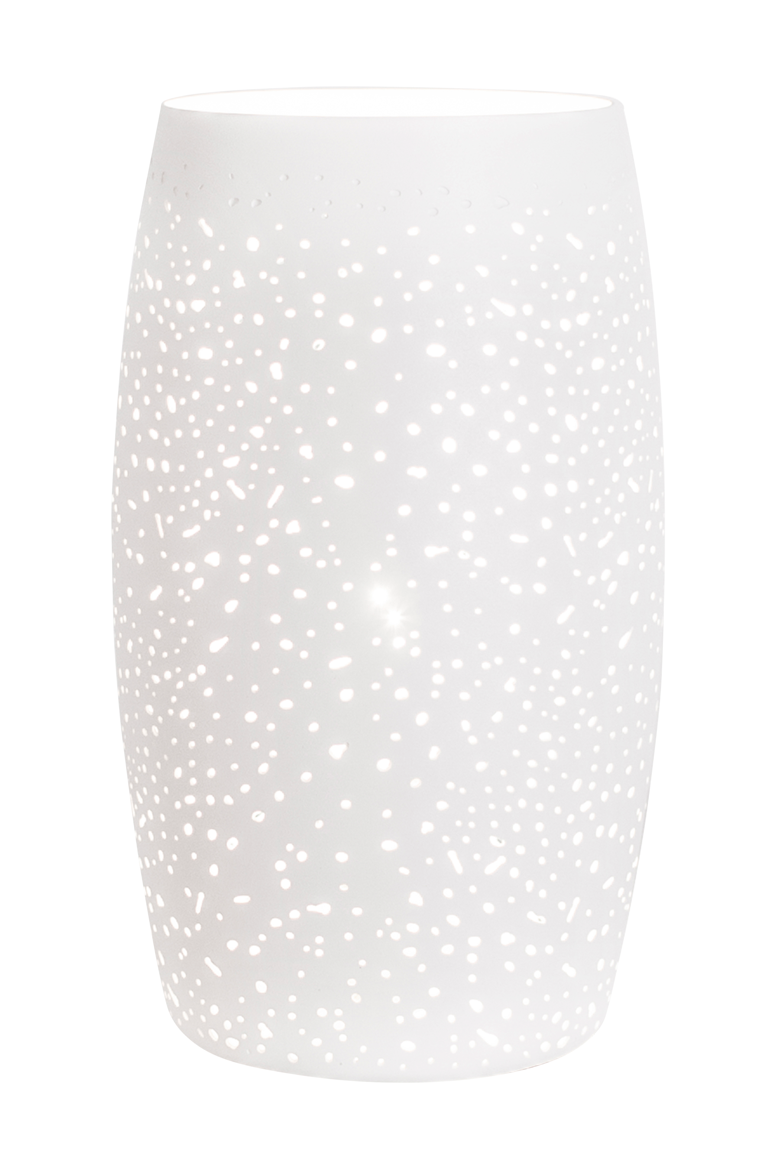 Colby bordslampa är en enkel metallfot i sandy vit finish med perforerade hål som gör det möjligt för ljuset att sippra ut och skapa en fin ljuseffekt. Höjd 26 cm, diameter 15 cm. Ljuskälla 1 styck. Ljuskälla ingår ej. Max 40 W. Sladdlängd 1,8 meter.