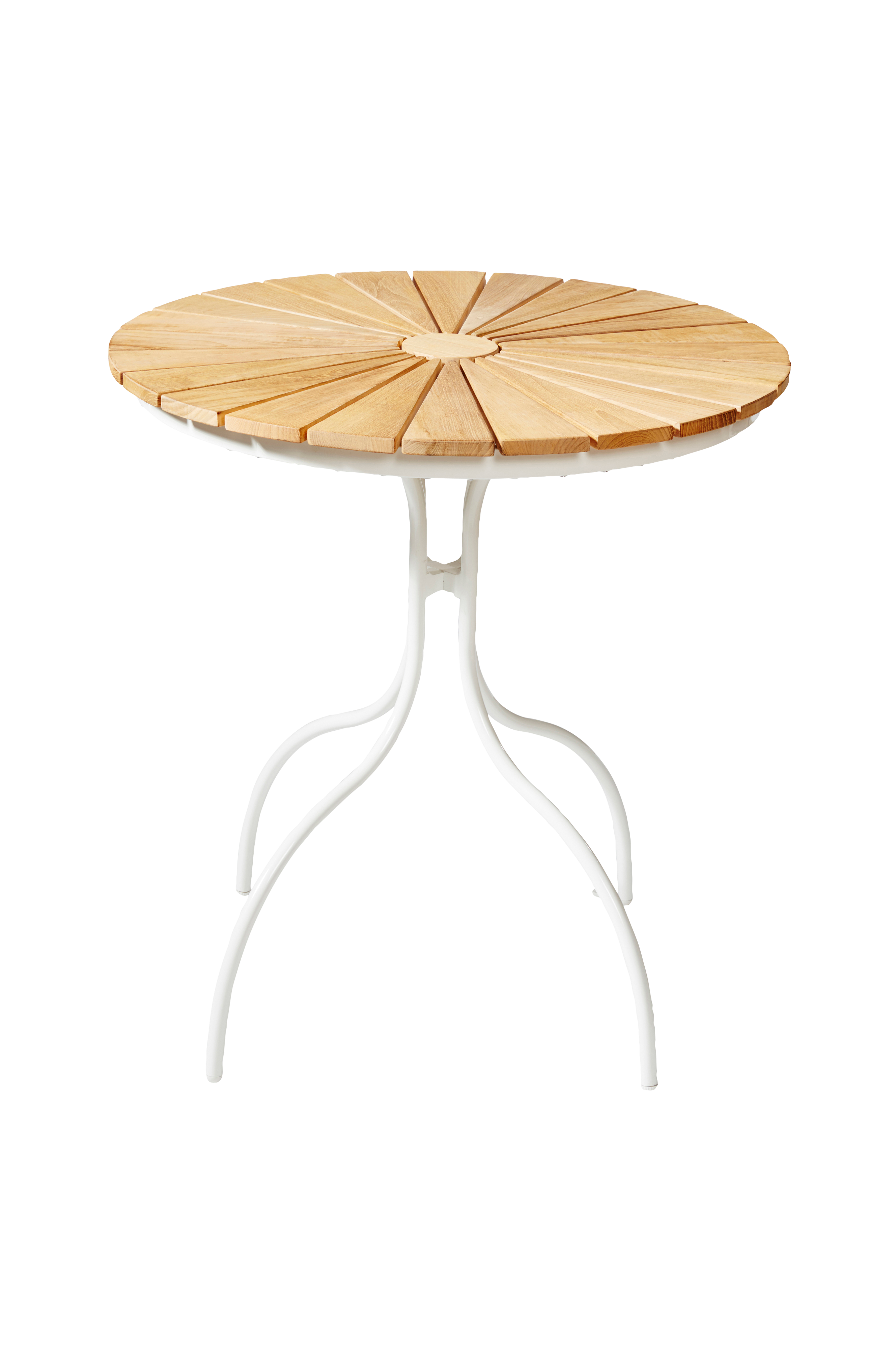 Trädgårdsbord i Skandinavisk design från 1950-talet. Solstrålar strålar från mitten av bordsskivan och skapar en varm visuell bild, komplettera gärna med Ellen stolar.