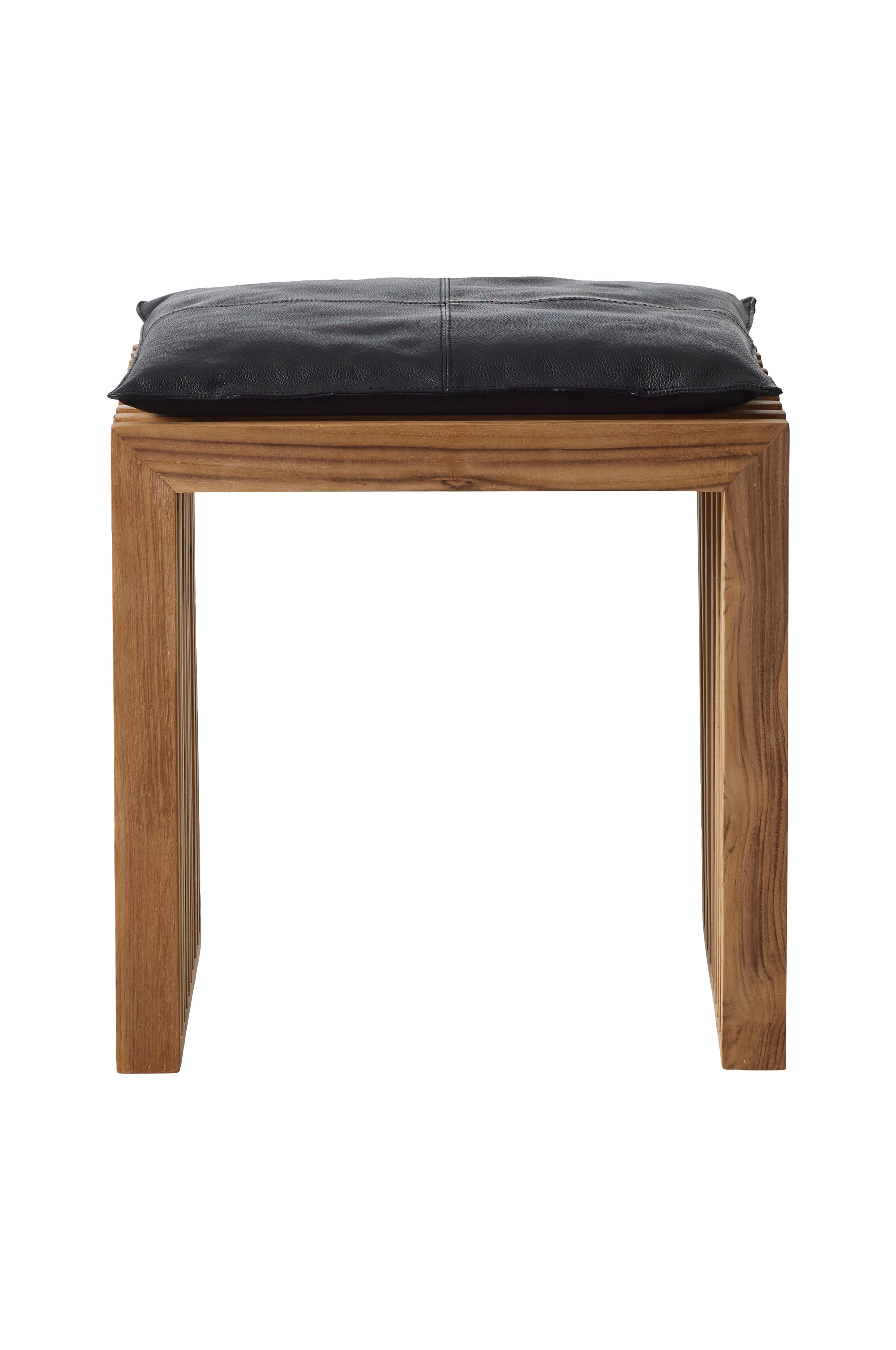 Pall för både inne och ute. Tillverkad i teak med snygg skinndyna.