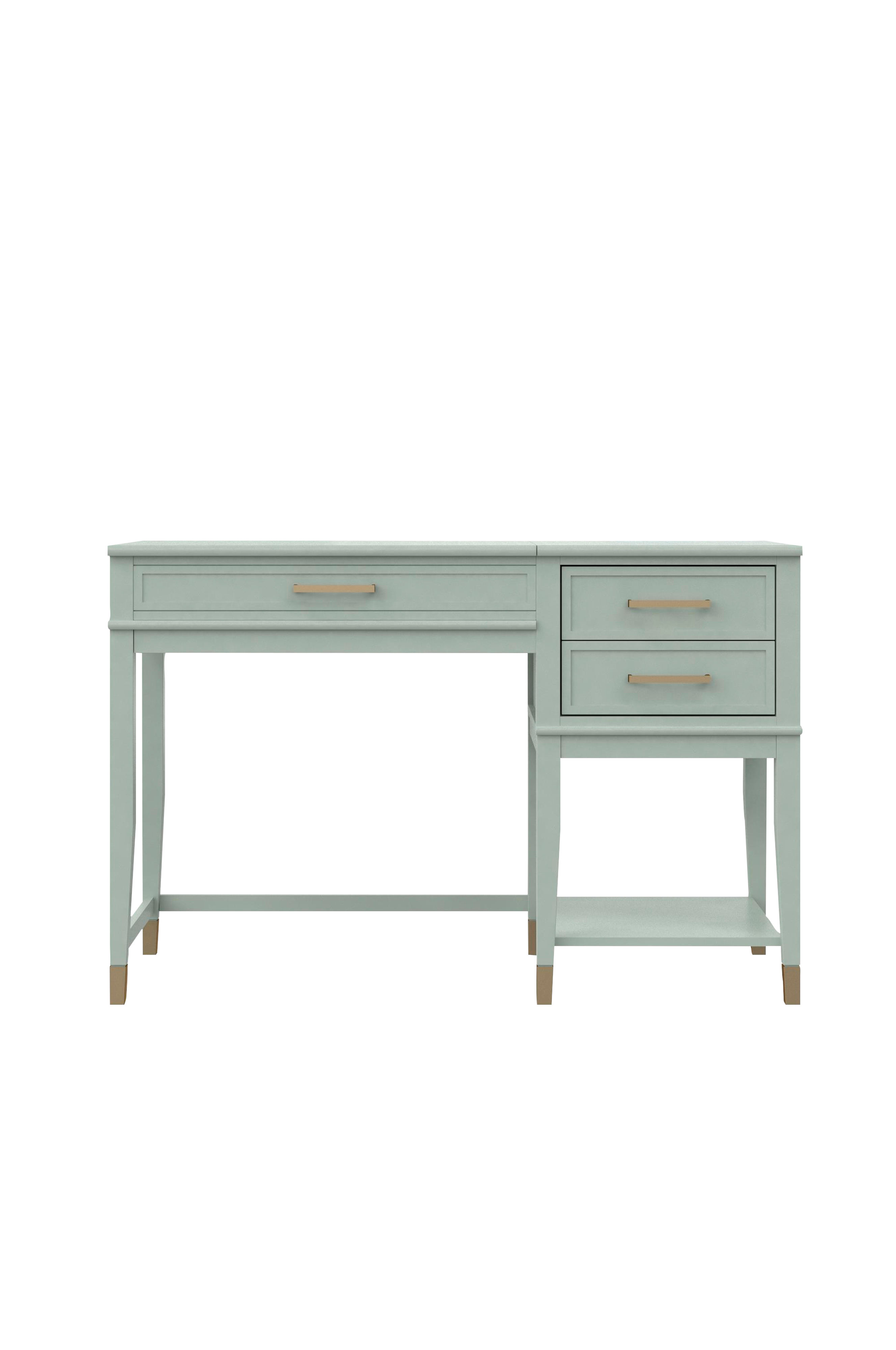 Arbeta med stil vid det höj- och sänkbara skrivbordet Westerleigh Lift Desk från CosmoLiving by Cosmopolitan. Det har trendiga guldfärgade detaljer samt två rymliga lådor. Men det bästa är att bordsskivan går att lyfta upp, så att du kan jobba både sittande och stående. Det här glamorösa skrivbordet finns i många olika färger.