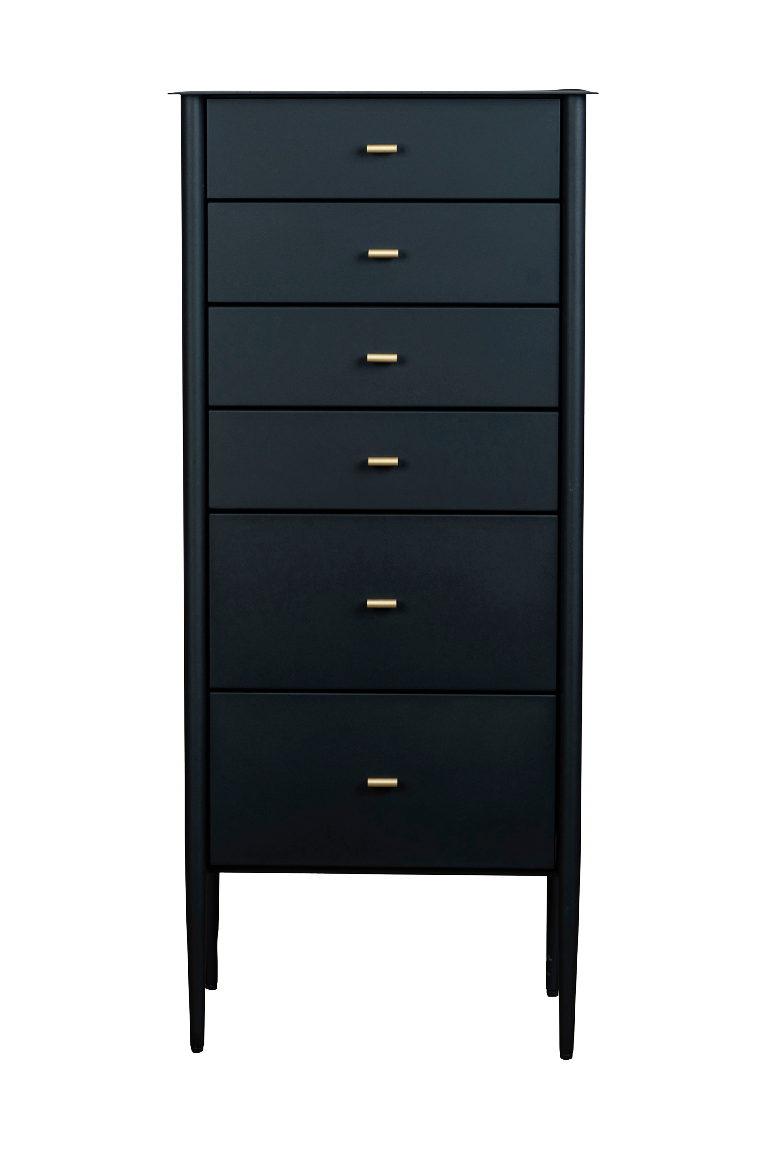 Byrå med 6 lådor i metall. Byrån är 115 cm hög, 50 cm bred och 35 cm djup.
