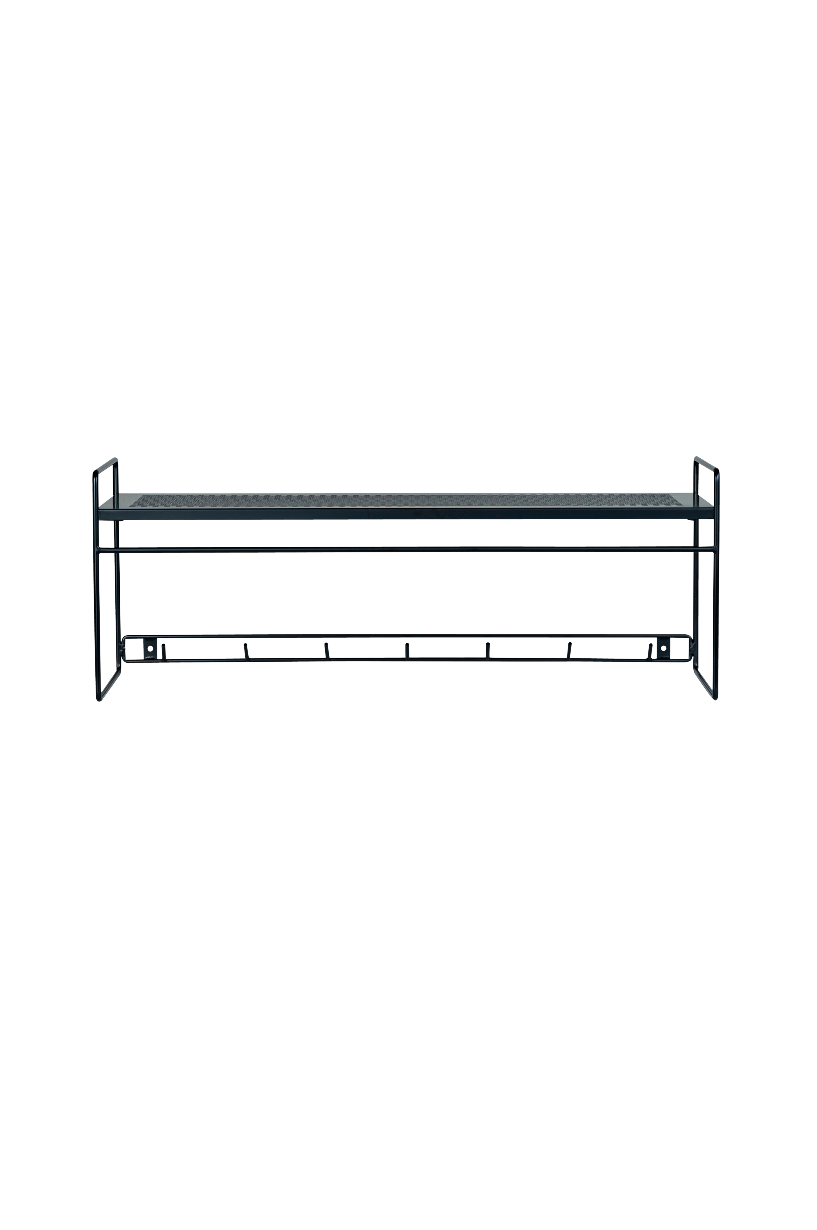 Alex är en stilren hatthylla tillverkad i metall. Utrustad med krokar samt hyllplan för denna produkt perfekt för hallen eller sovrummet. Kombinera gärna med skohylla i samma serie.