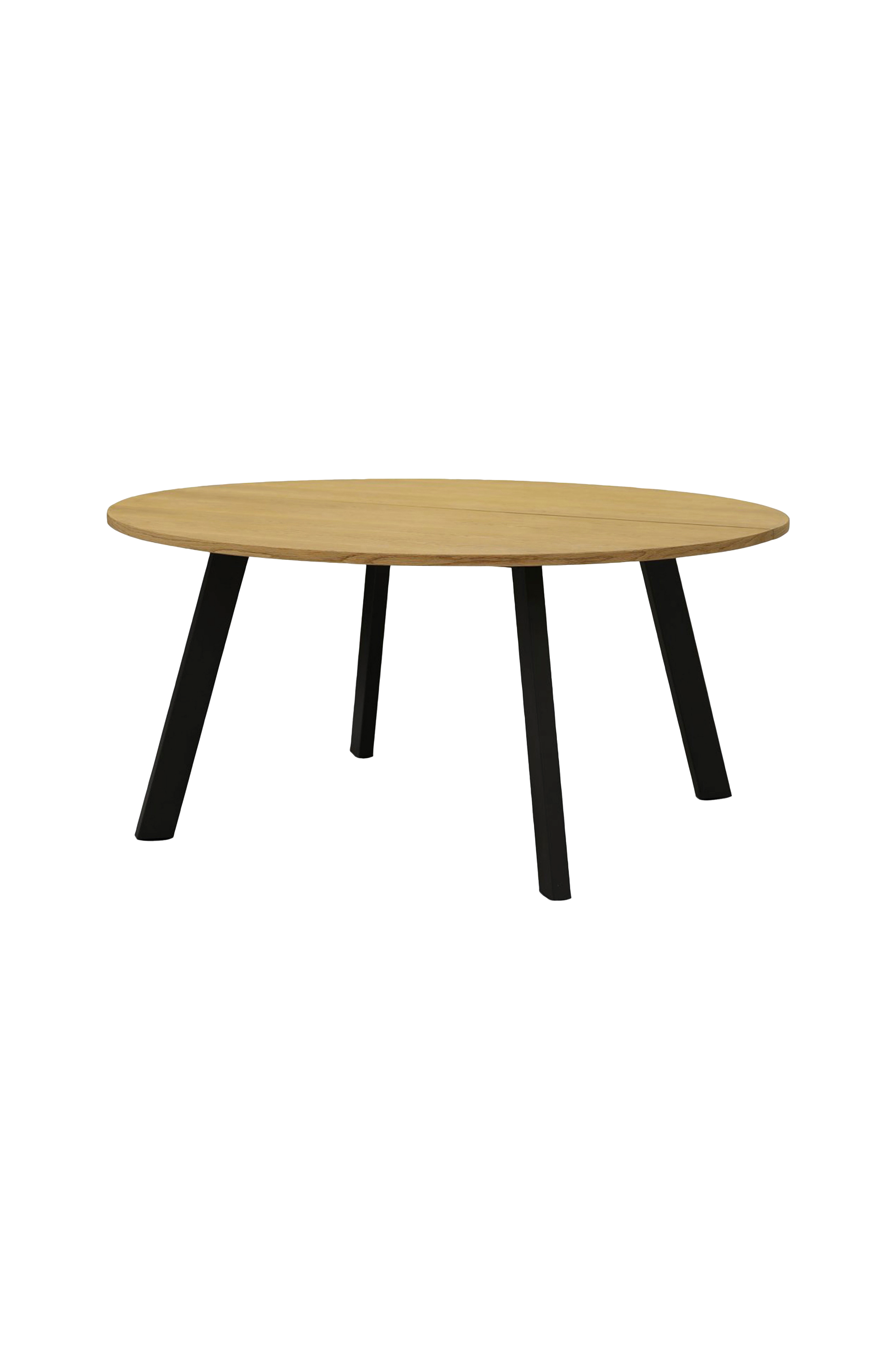 Denna eleganta och moderna bordsserie kombinerar tidlös design med funktionalitet. Bordet har en robust bordsskiva i naturligt trä och eleganta svart pulverlackerade metallben och blir den perfekta mittpunkten i alla rum. Dess runda form skapar en inbjudande atmosfär som är idealisk för sociala sammankomster, medan de rena materialen förkroppsligar skandinavisk minimalism.