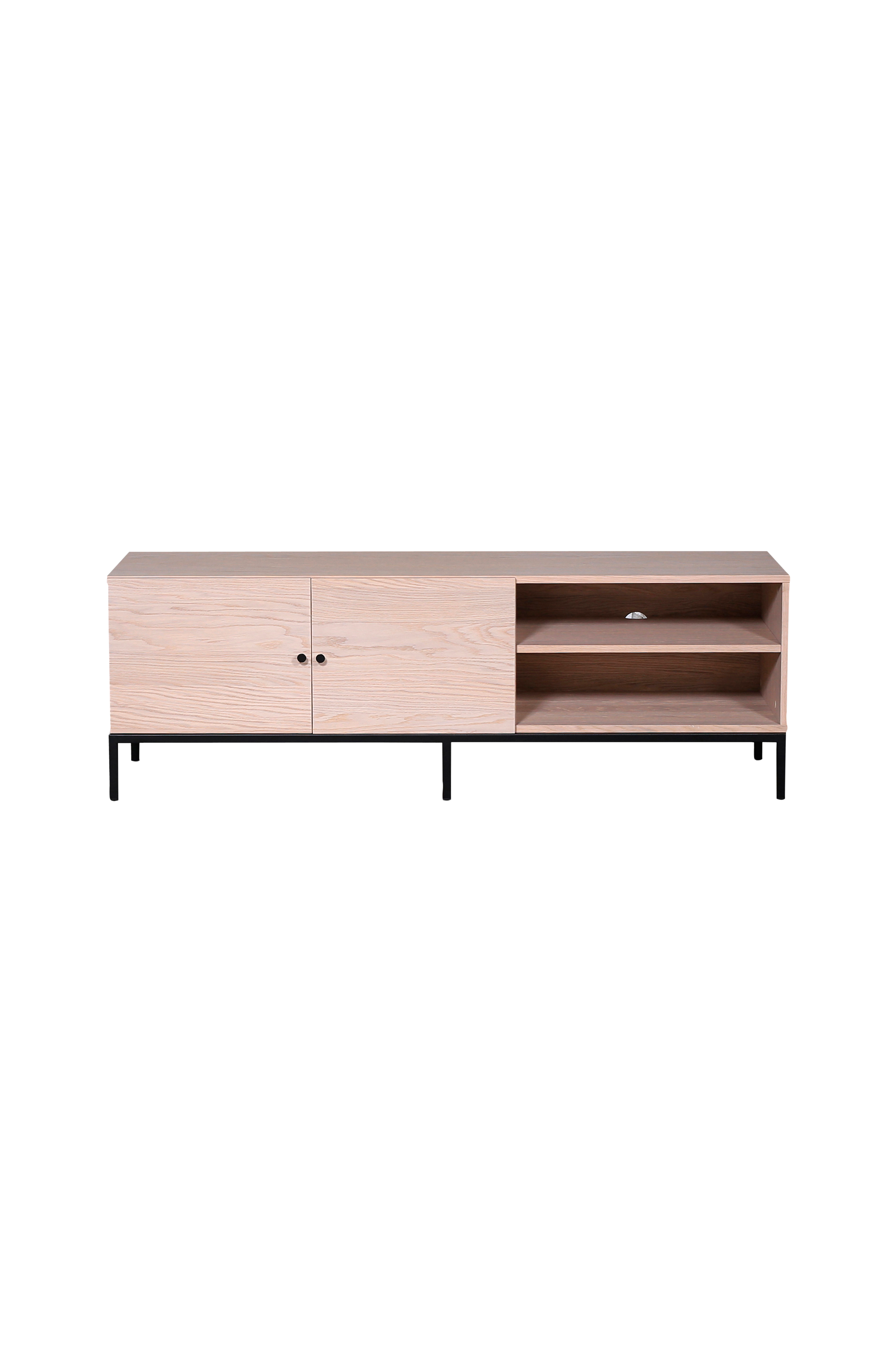 Mediabench i serien brooklyn erbjuder bra förvaring och har justerbara hyllplan, varje hyllplan har även hål i bakkant för att kunna dra kablar mellan hyllplanen. Mediabänken har måtten 150x50x45 cm.