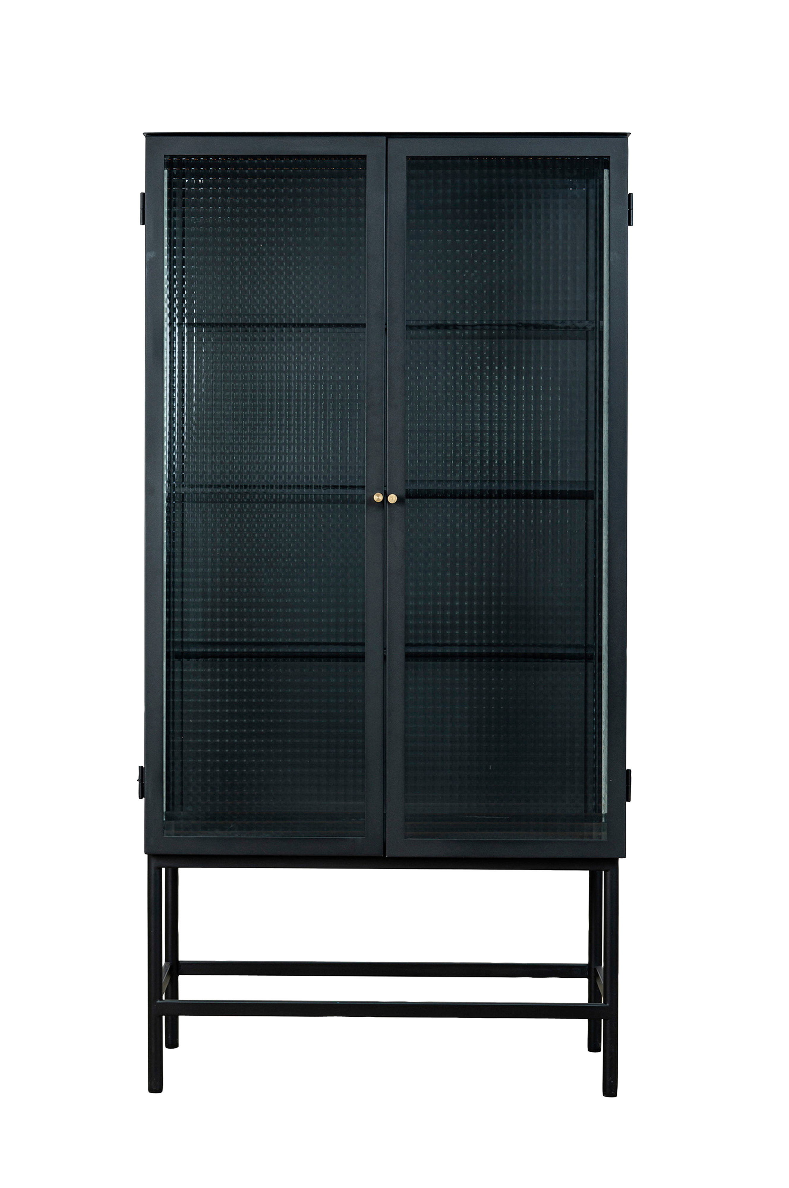 Skåp i modern industriell stil. Skåpet har glas på sidorna och på dörrarna, vilket ger ett härligt ljusinsläpp, och extra höga ben för en luftigare känsla. Kabinettet har måtten 160x80x37 cm.