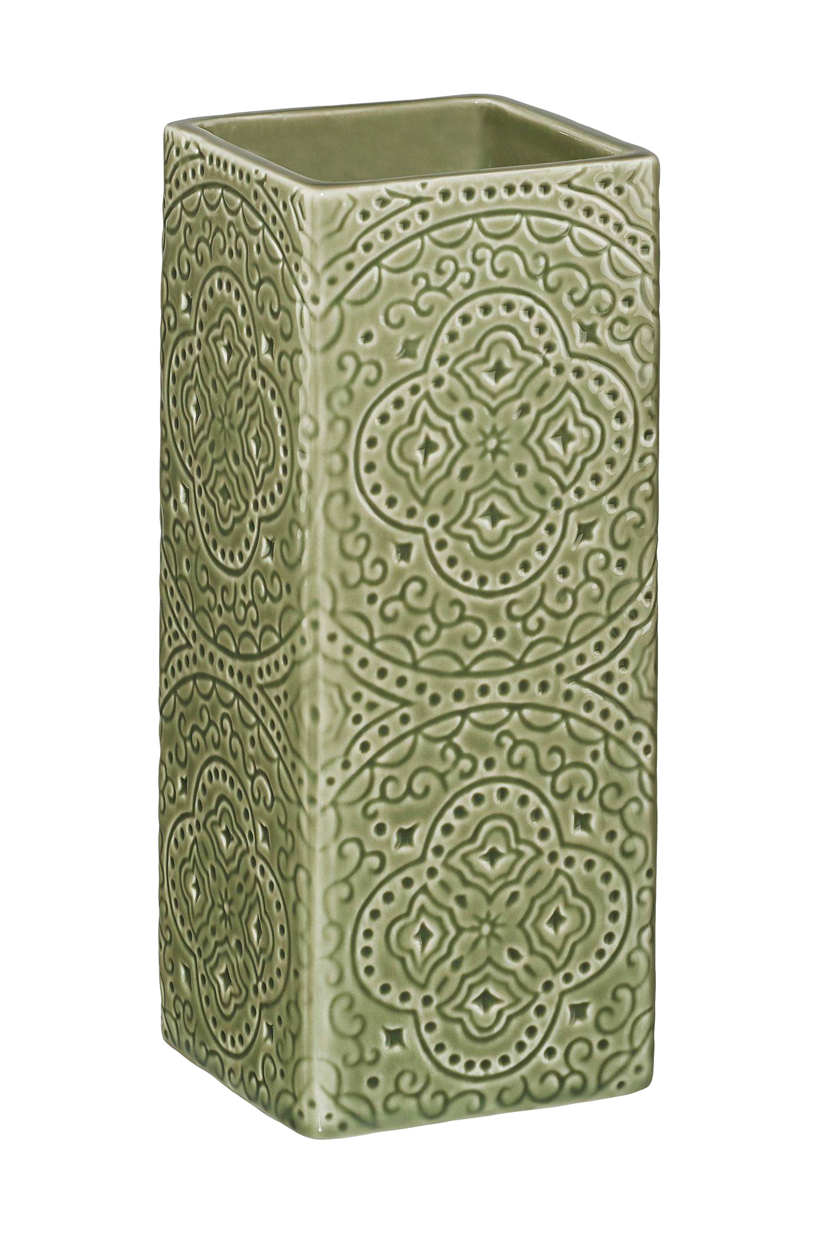 Diskborsthållare i keramik med reliefmönster som matchar diskmedelspumpen i samma serie. Den rymmer enkelt en diskborste och en kökssvamp. Designad av Marita Lord .