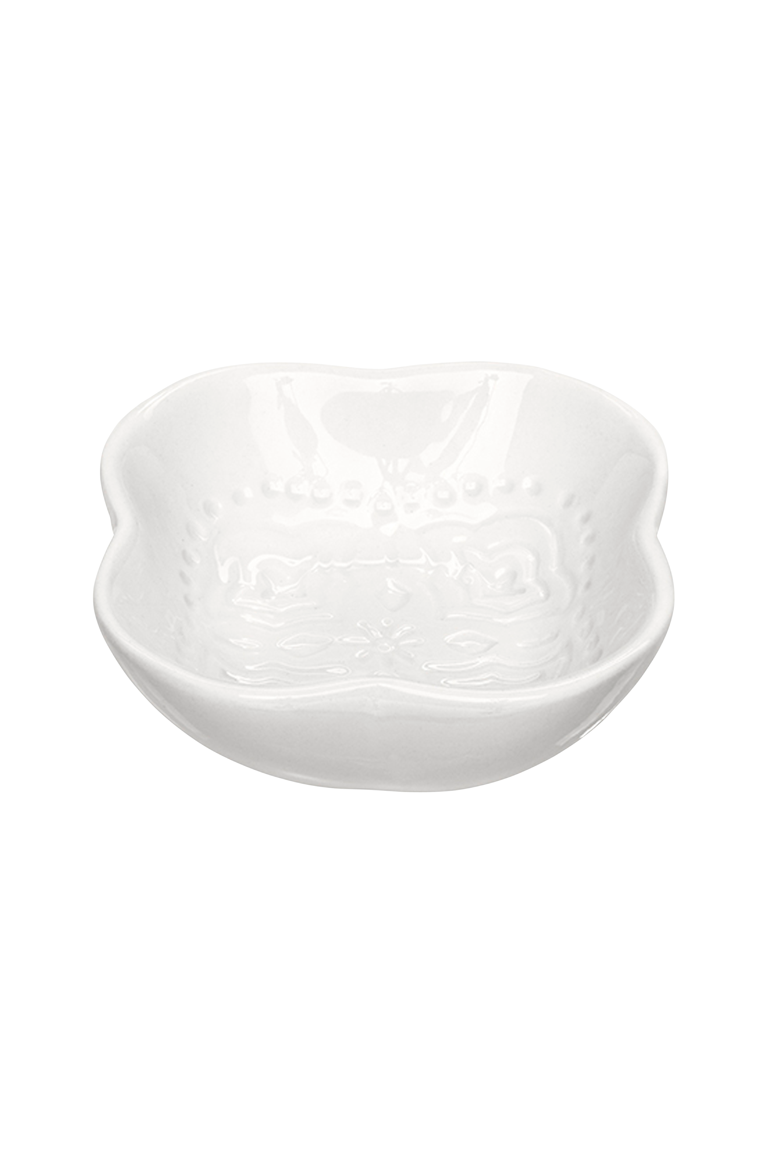 Liten skål av tåligt stengods med vackert reliefmönster. Passar utmärkt för de minsta tillbehören på bordet, så som flingsalt eller soya. Tål mikrovågsugn, ugn och diskmaskin. Designad av Marita Lord.