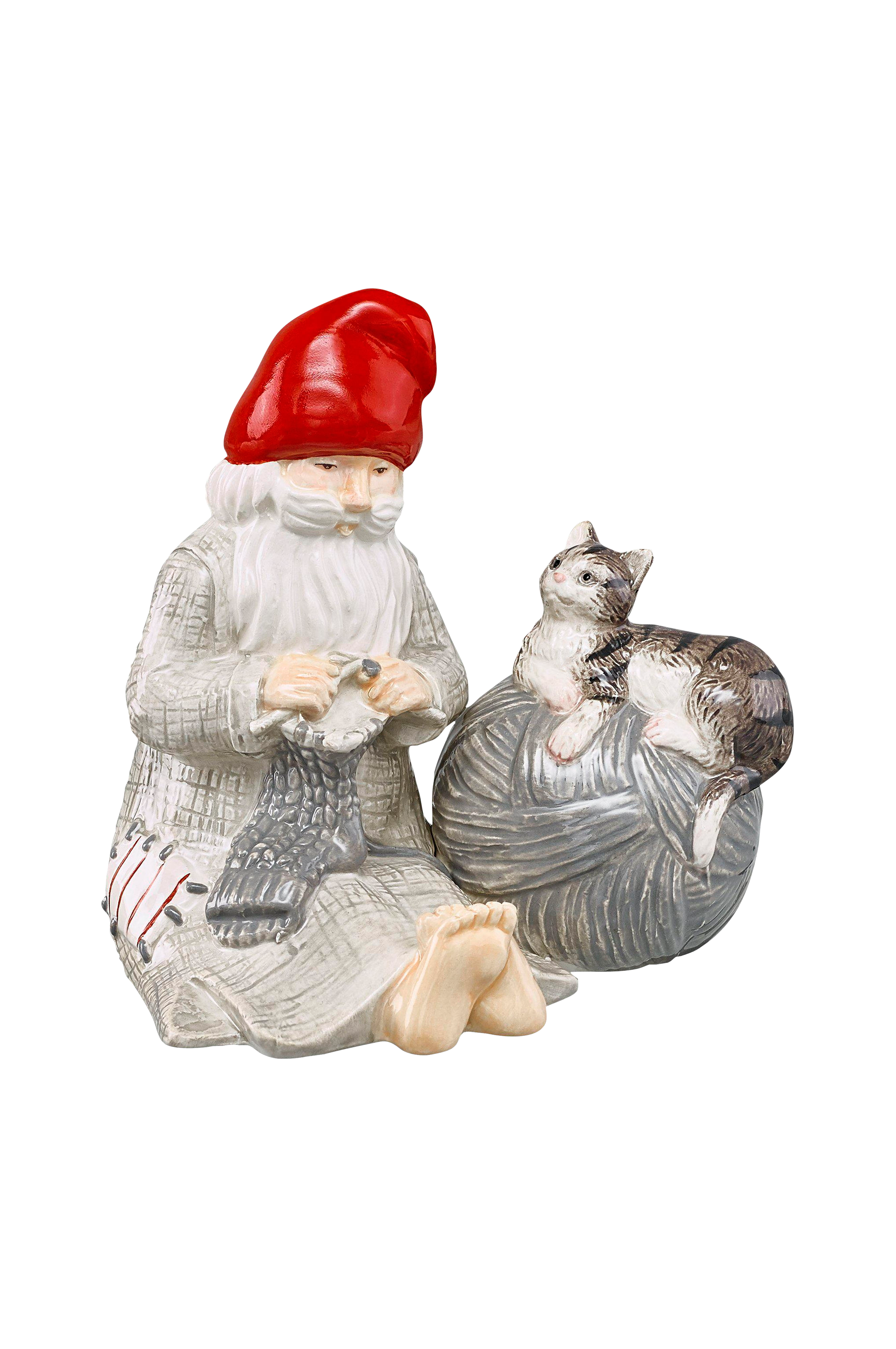 Handmålad tomte i keramik. Serien raggsock med detaljer från gammal svensk stickning. Design marita lord