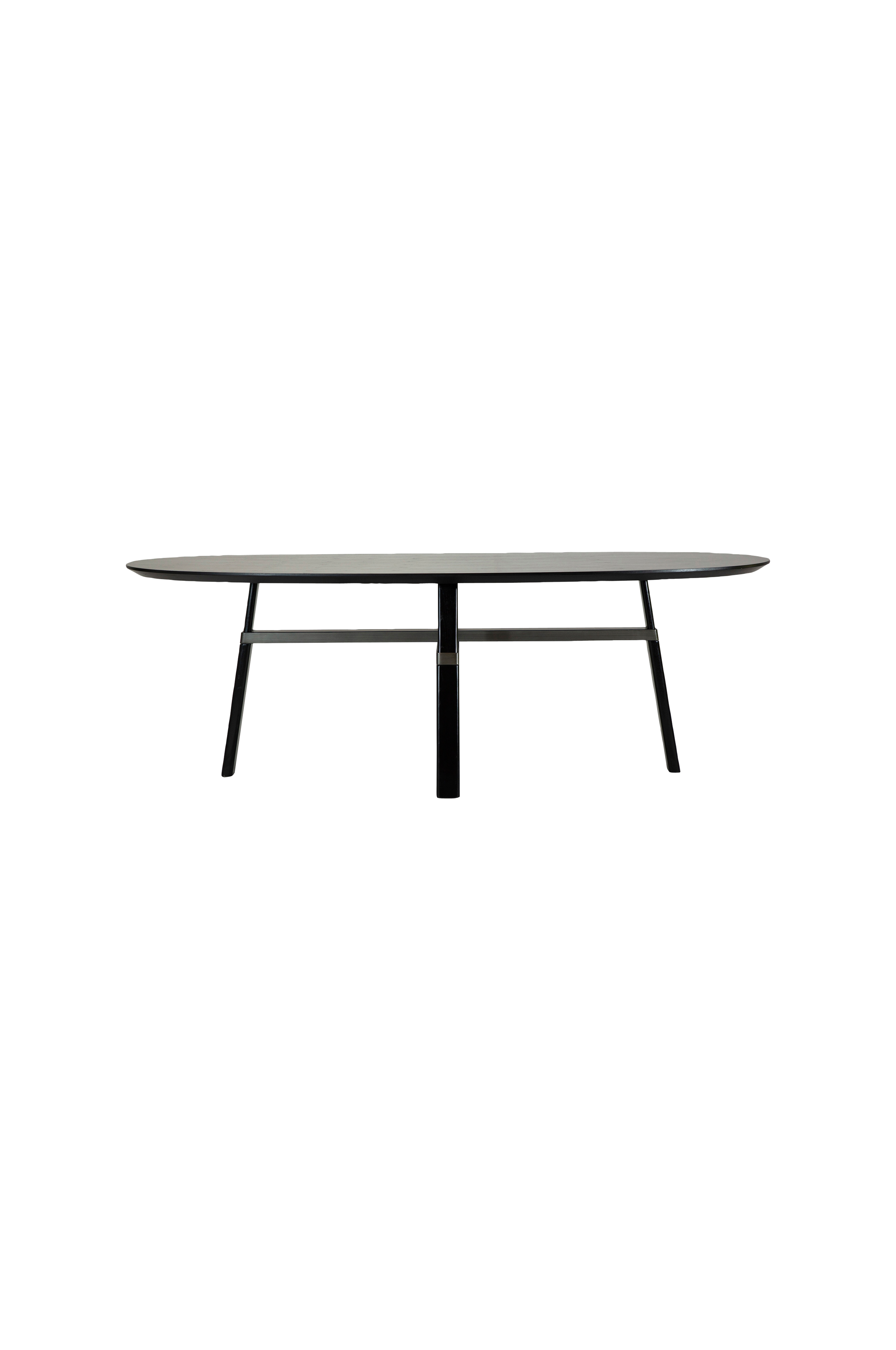 cross är en klassisk bordsdesign med djärvt hantverk av santiago sevillano, och bordet går inte obemärkt förbi. Det har en oval bordsskiva och korslagda träben med extravaganta, hantverksmässigt utformade fogar. Den rundade bordsskivan har en fasad kant som ger en lätt och luftig känsla, medan de robusta benen ger en jordnära estetik.