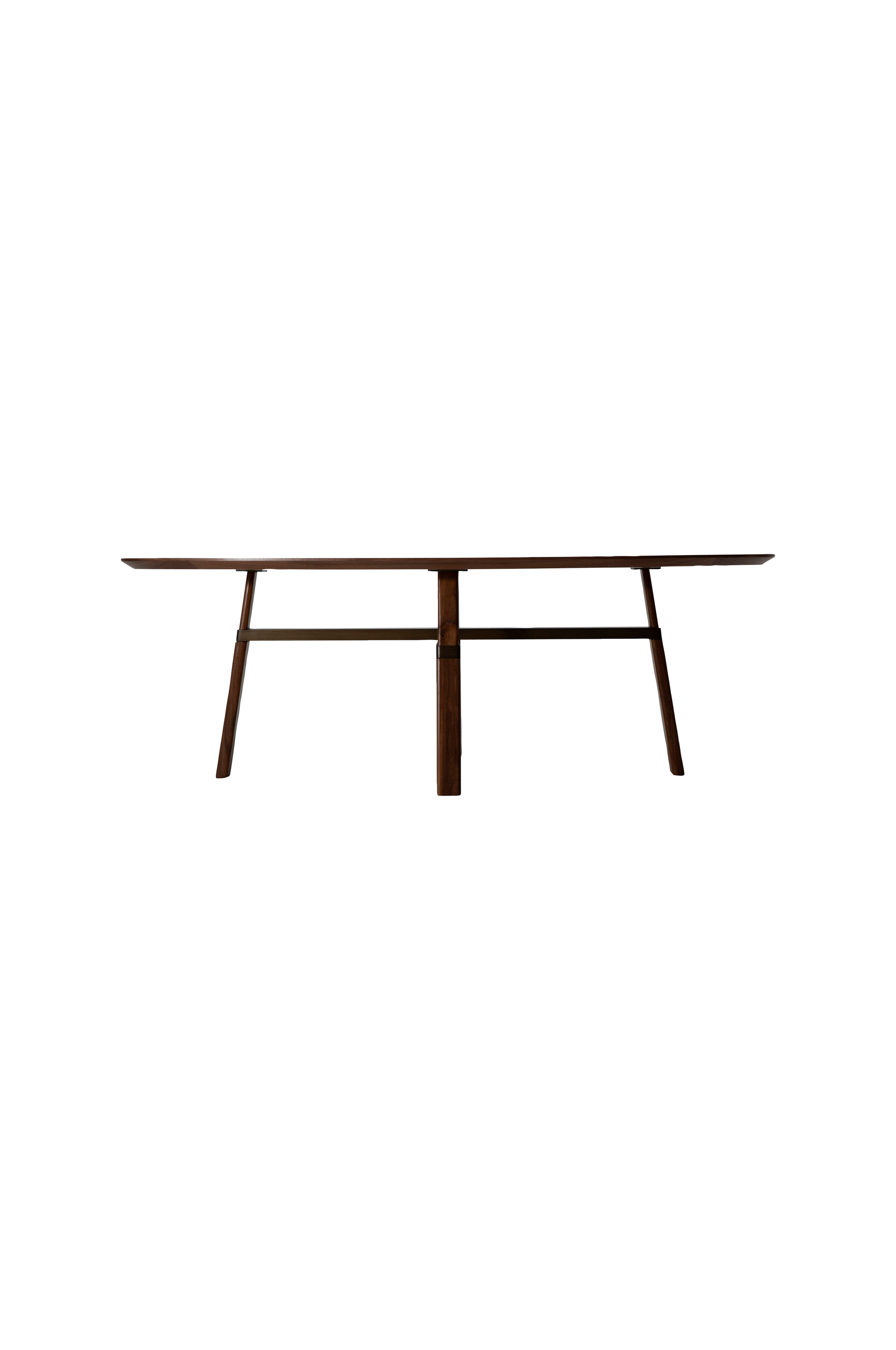 cross är en klassisk bordsdesign med djärvt hantverk av santiago sevillano, och bordet går inte obemärkt förbi. Det har en oval bordsskiva och korslagda träben med extravaganta, hantverksmässigt utformade fogar. Den rundade bordsskivan har en fasad kant som ger en lätt och luftig känsla, medan de robusta benen ger en jordnära estetik.