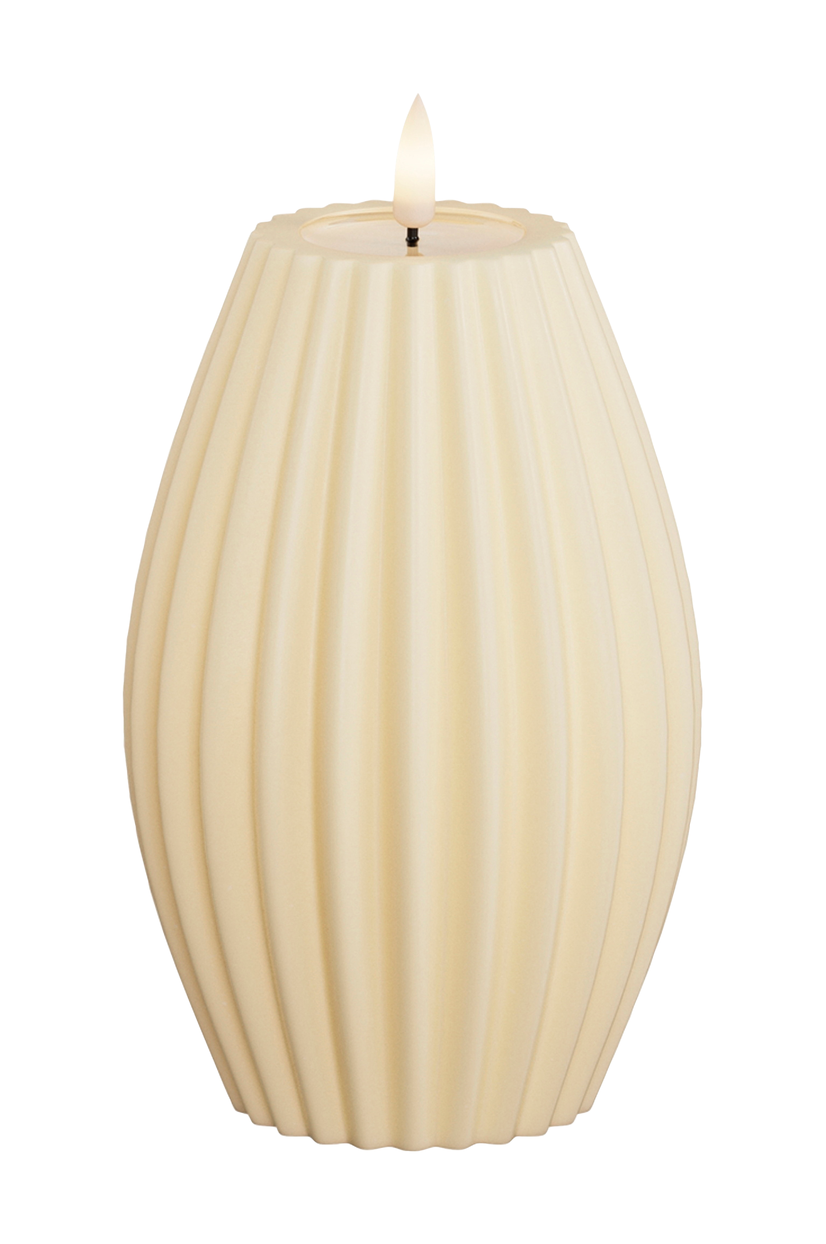Ge ditt hem ett stilfullt och varmt ljus med detta led-ljusblock med en elegant räfflad yta. Ljuset är tillverkat av paraffinvax och harts och erbjuder både säkerhet och hållbarhet, och sprider ett vackert sken utan att du behöver oroa dig för öppna lågor.