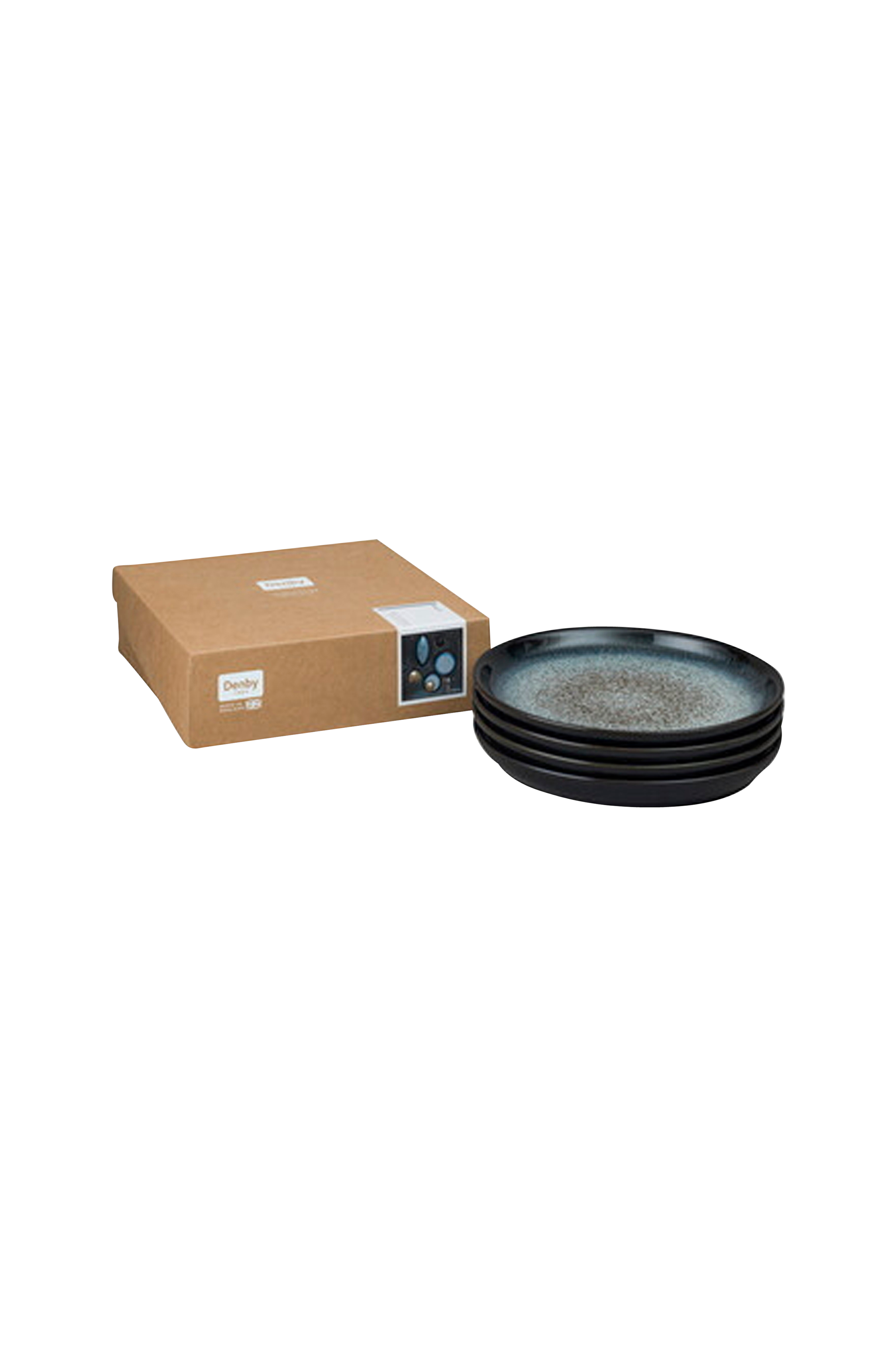 4 st tallrikar i serien Halo från Denby. En handgjord stengodsserie med fängslande glasyr och skicklighet i keramik som förts vidare genom flera generationer. Två glasyrer har lagts över för att skapa detta unika och effektfulla utseende. Leran till Halo är tagen utanför Denby's 200 år gamla fabrik i Derbyshire.