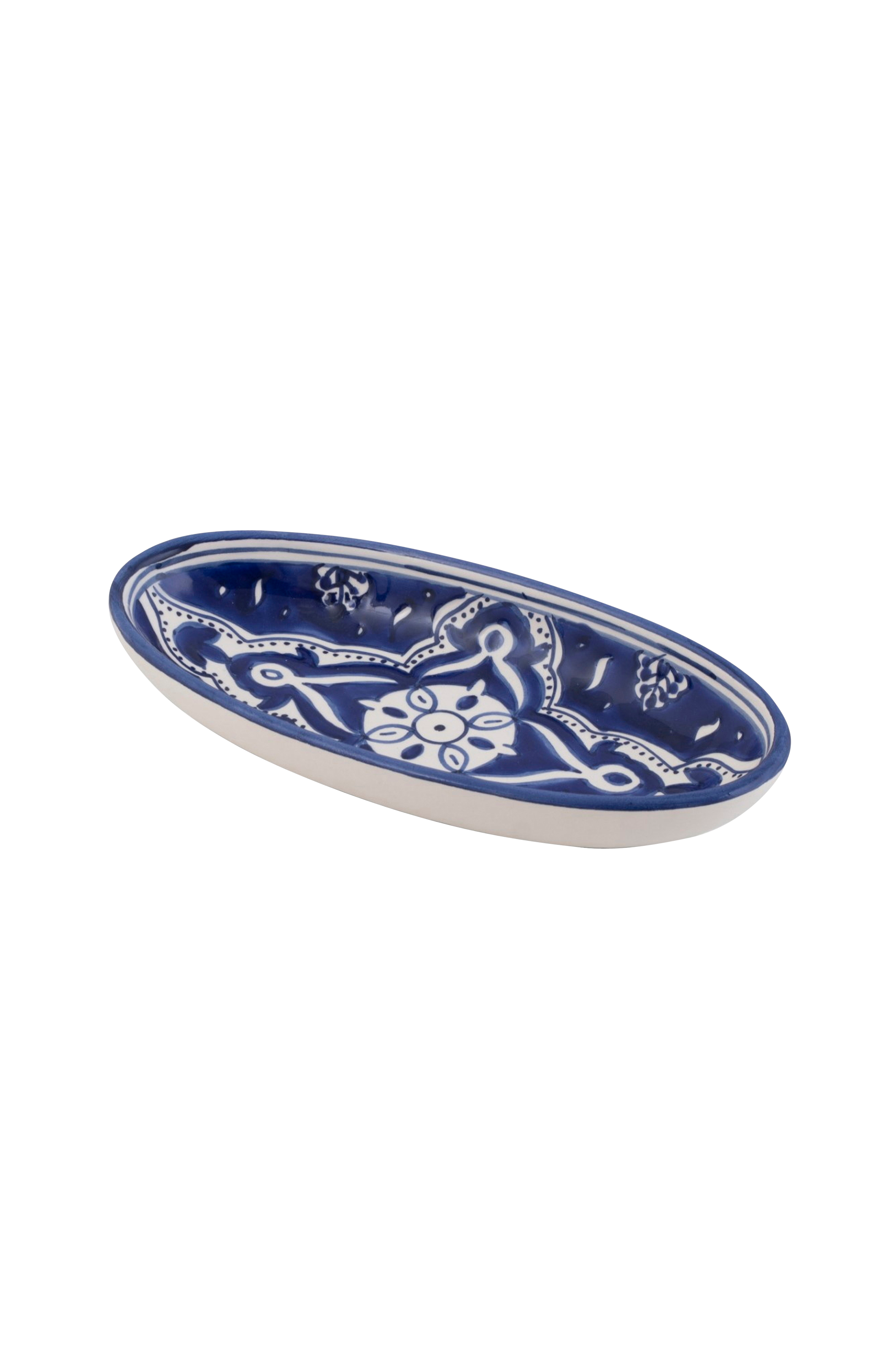Detta 20 cm ovala fat är perfekt för att servera mindre portioner av rätter som förrätter, delikatesser eller små snacks vid middagsbjudningar eller andra evenemang. dishes & deco-produkter är handgjorda och handmålade i Tunisien och alla deras serveringsfat/skålar är tillverkade av hållbar vit stengodslera. Tål ugn, mikrovågsugn och diskmaskin.