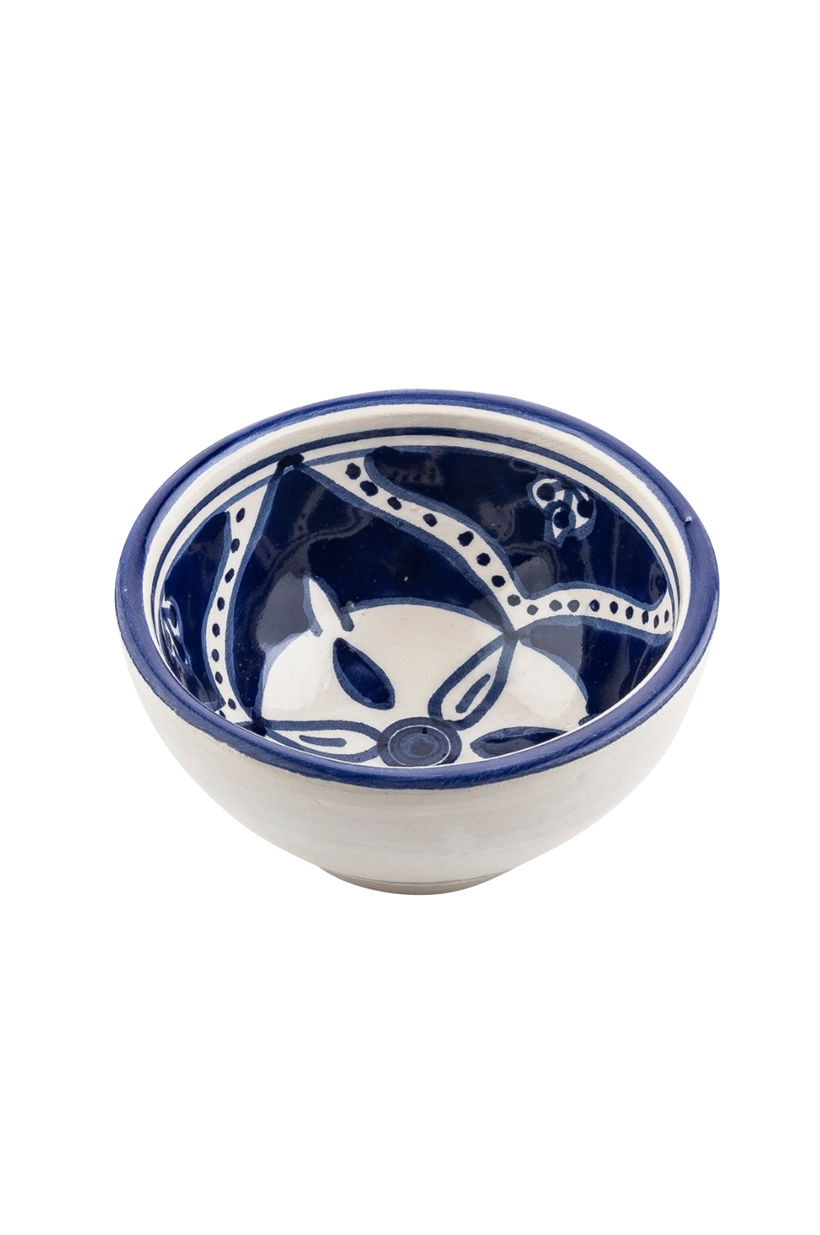 6 cm skål: perfekt för mindre portioner, såser, eller för att serveraa tilltugg eller efterrätter i små portioner. Dishes & deco produkter är är tillverkade för hand och handmålade i tunisien och alla deras serveringsfat/skålar är tillverkade av hållbar vit stengodslera. Ugns-, mikro- och diskmaskinsäker.