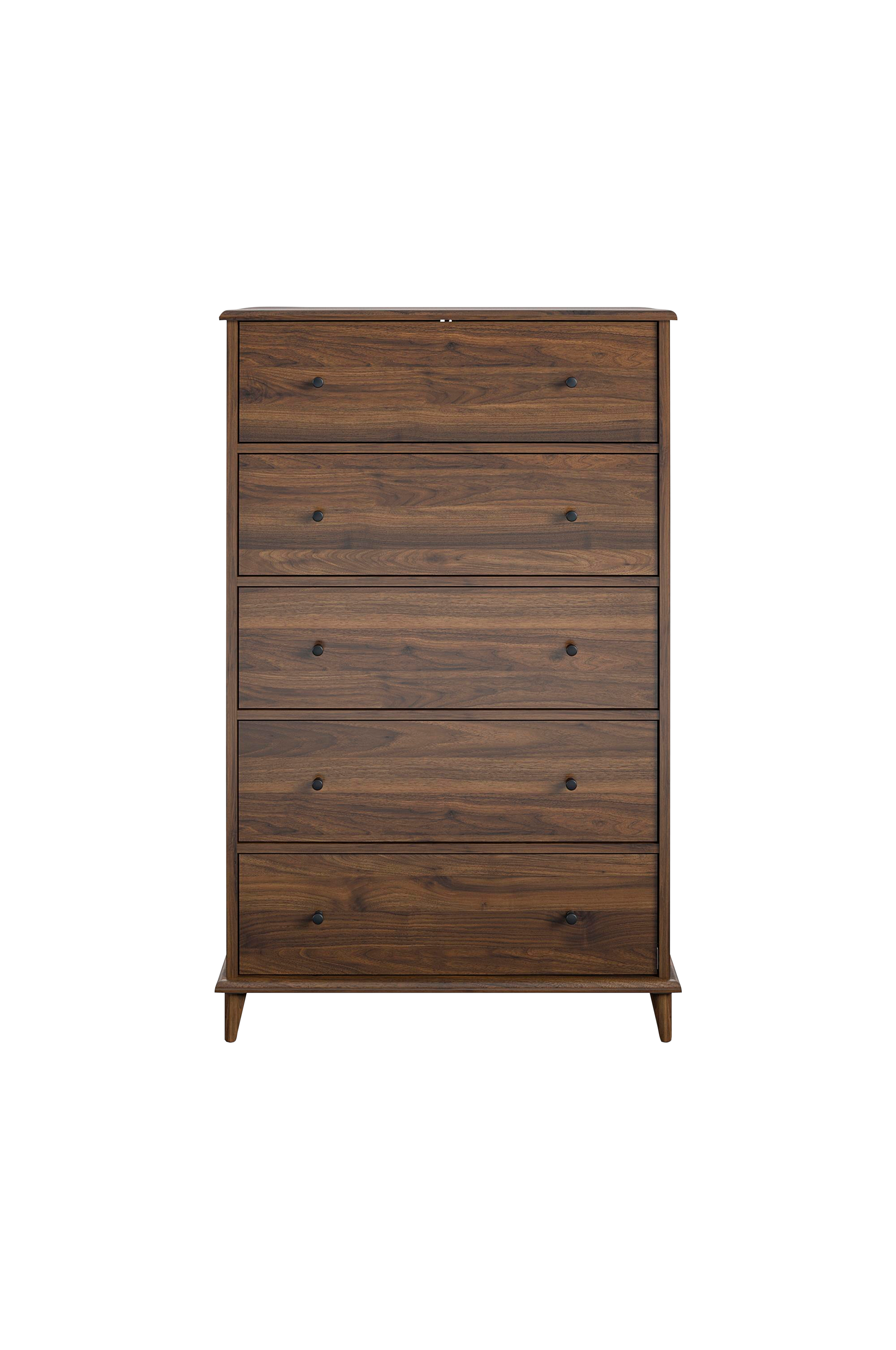 Det som händer i sovrummet, stannar i sovrummet... Men du kan ändå piffa till det med byrån Farnsworth med 5 lådor från Dorel Home. Lyssna, vi alla har för många kläder i våra garderober. Man skulle kunna tro att någon skulle komma på att göra de där garderoberna större!! Tills dess kan du förvara de extra kläderna i de 5 rymliga lådorna med slitstarka metallskenor. Lådornas insida har en slät finish som gör att kläderna inte fastnar i vassa kanter. Ett kit för att fästa möbeln säkert i väggen medföljer. Laminerad MDF och spånskiva med klassisk finish är både snyggt och prisvärt! Kombinera byrån med övriga möbler i Farnsworth-kollektionen för en enhetlig och skarp look!