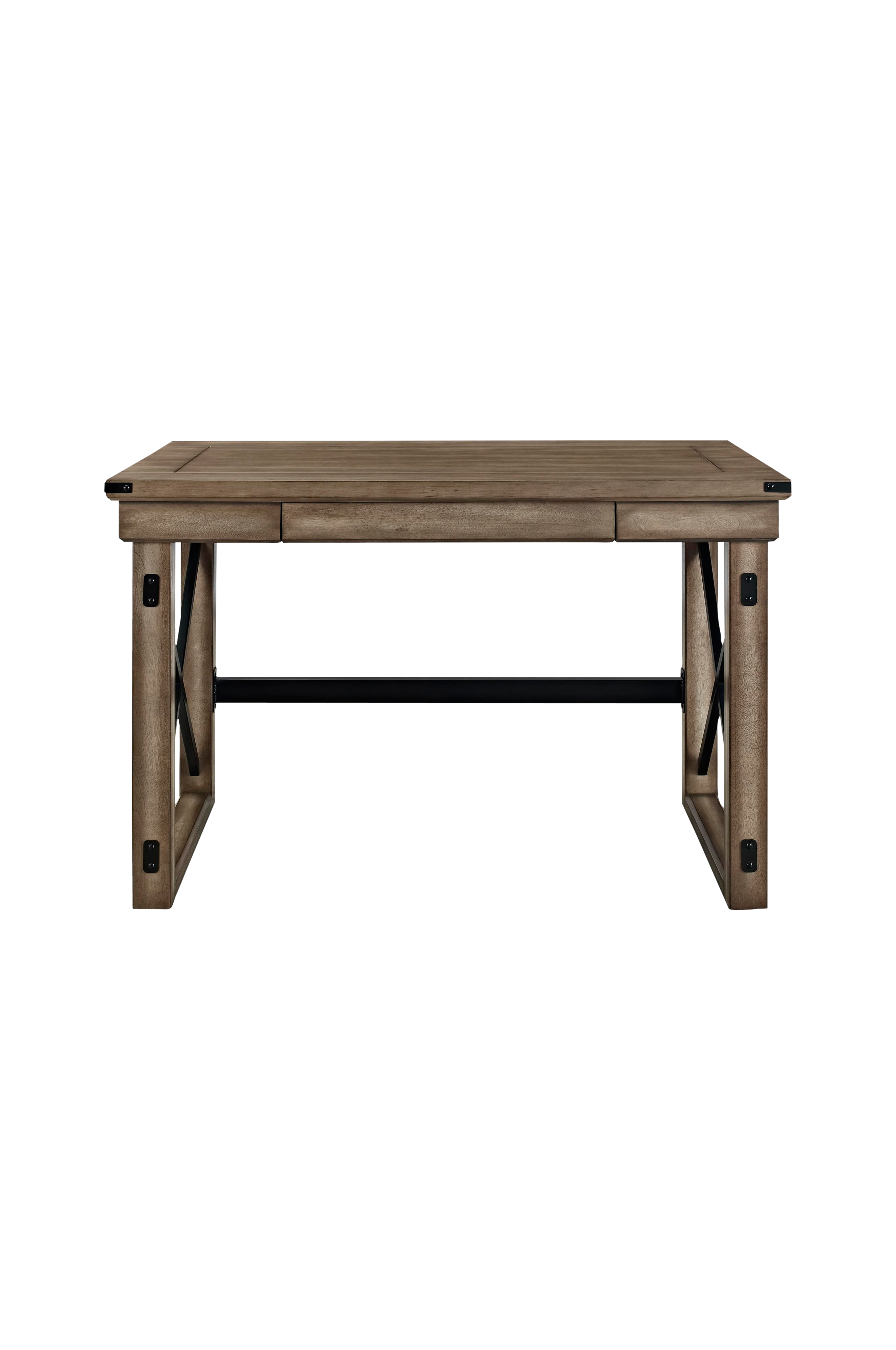 Arbeta hemifrån med stil med datorbordet Wildwood Wood Veneer Computer Desk. Den här vackra möbeln är designad för hemmakontoret, vardagsrummet eller sovrummet och har en generös arbetsyta som rymmer både laptop och kontorsmaterial samt en liten låda för mindre artiklar. Snygga detaljer av svart metall med zickzackmönster ger en sofistikerad touch. Detta stadiga datorbord är tillverkat av äkta träfaner och mäter B121 x D60 x H76 cm. Montering krävs.