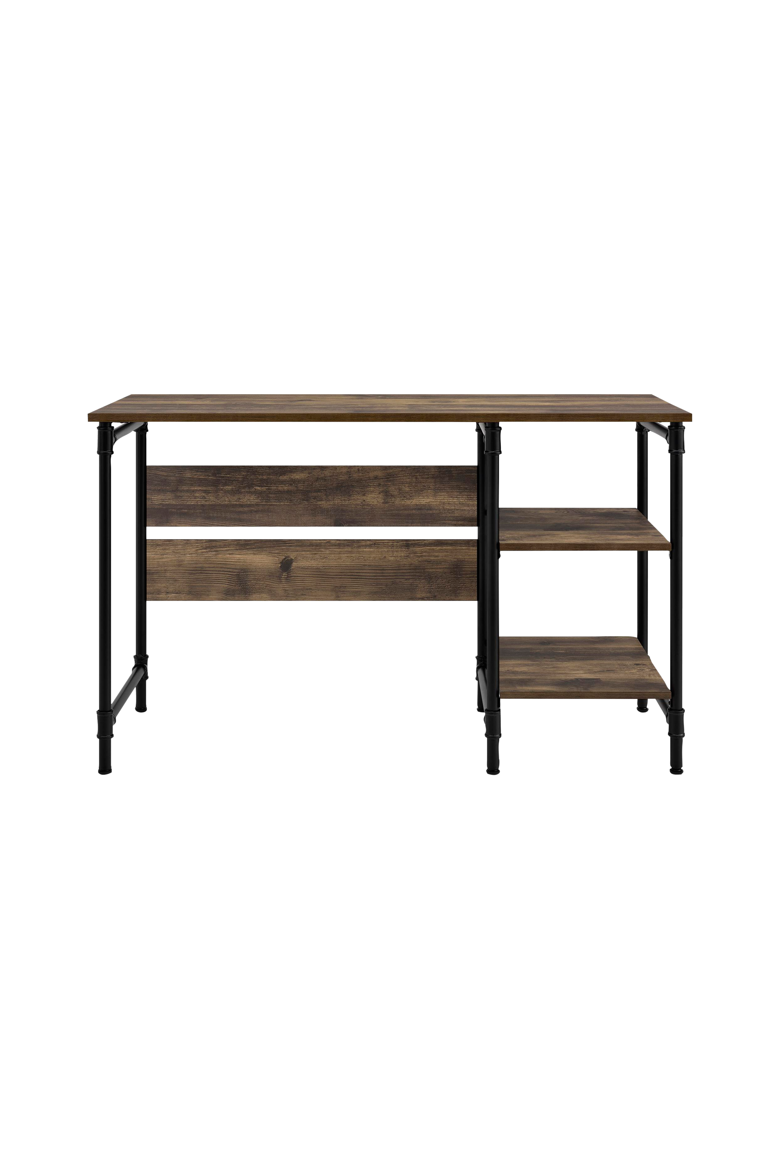 Ge ditt hemmakontor en ny look med skrivbordet Carter Single Pedestal Desk. Det är tillverkat av laminerad spånskiva och metall, och tillsammans med den mellanbruna finishen skapar de svarta pulverlackerade benen en trendig look. Den industriella stilen förstärks ännu mer av att benen ser ut som metallrör. Materialet ser realistiskt ut och ger intryck av att vara massivt trä. Den generösa arbetsytan rymmer bordslampa, laptop och kontorsmaterial. De två hyllorna på sidan är perfekta för papper, manualer och dekorationer. De två brädpanelerna baktill förhöjer den rustika känslan ytterligare. Komplettera hemmakontoret med bokhyllan Carter 3 Shelf Bookcase för en enhetlig look (säljs separat). Skrivbordet levereras i ett platt paket och bör monteras av två vuxna. Monterat mäter skrivbordet B120 x D50 x H76 cm.