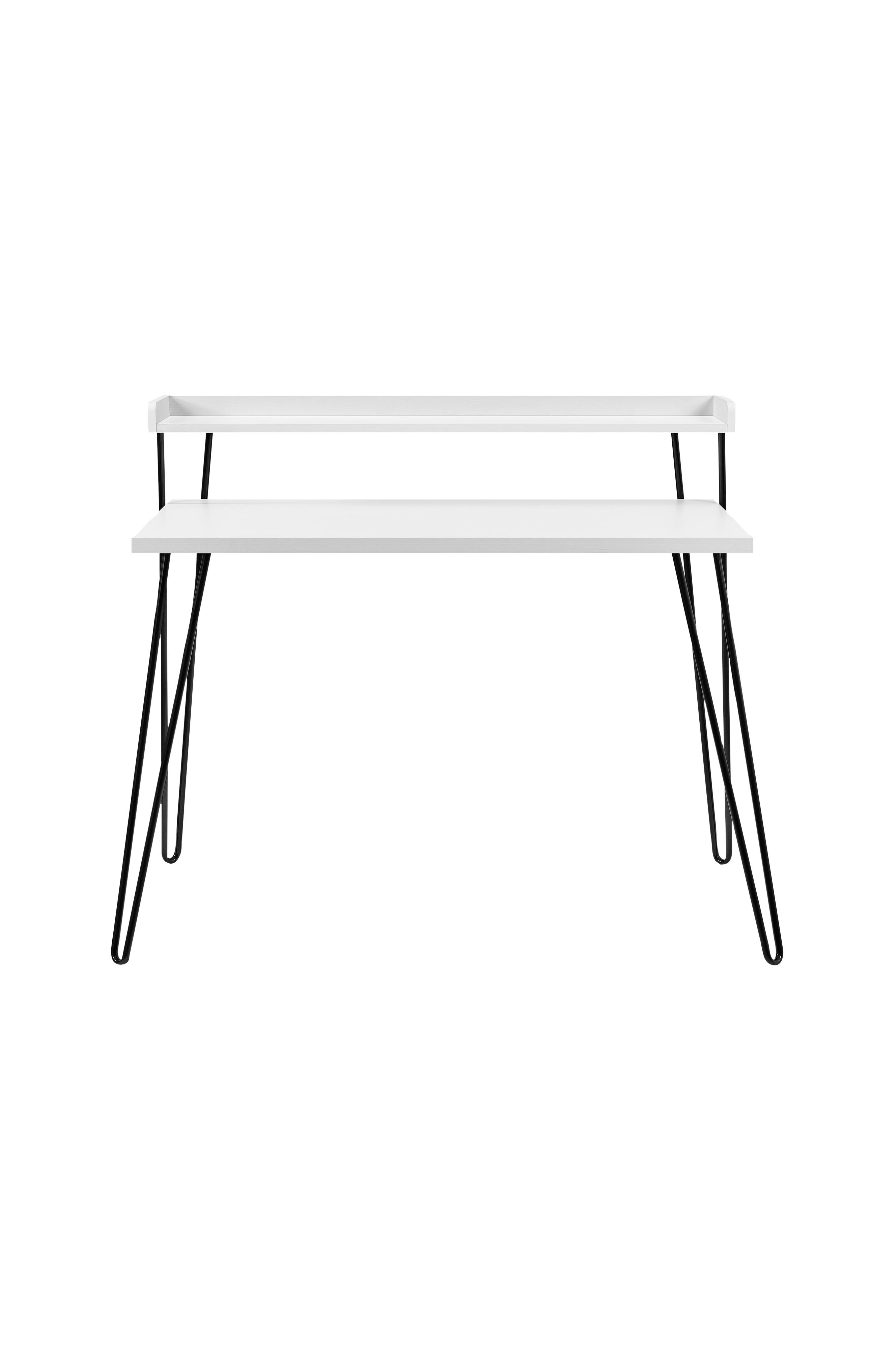 Skrivbordet Haven Retro Desk kombinerar industriell och modern stil. Det är kompakt, har två nivåer och passar utmärkt i mindre rum. Med det här skrivbordet kan du skapa en arbetsplats som fungerar för dig, var som helst i hemmet. Arbetsytan är stor nog för att rymma laptop, skrivböcker och kontorsmaterial och den upphöjda hyllan fungerar som praktisk avlastningsyta. De smäckra benen i metall skapar en härlig retrokänsla. Skrivbordet levereras i ett platt paket och kräver minimal montering. Vi rekommenderar att två vuxna monterar produkten.