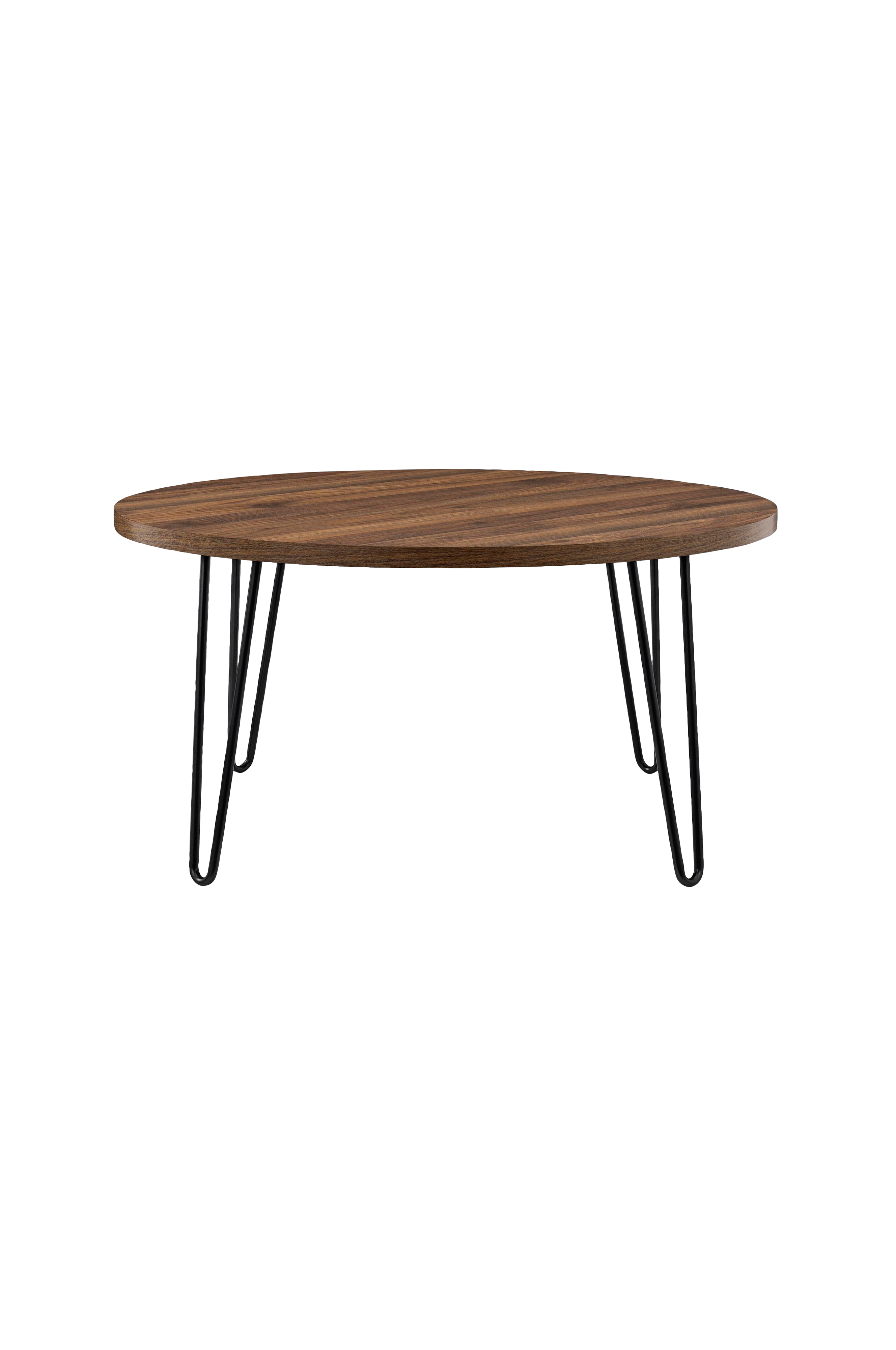 Ge ditt vardagsrum en retrolook med soffbordet Owen Retro Round Coffee Table. Designen påminner om 1950-talet och de svarta benen ger en industriell känsla samtidigt som bordsskivans mellanbruna träfinish tillför en klassisk touch som känns som äkta trä. Den generösa bordsskivan rymmer böcker, tidningar, fjärrkontroller och dekorationer. Bordet är tillverkat av laminerad spånskiva och kräver minimal montering. Vi rekommenderar att två vuxna monterar produkten. Soffbordet klarar en tyngd på upp till 27 kg. Efter montering mäter soffbordet H45 x B90 x D90 cm.