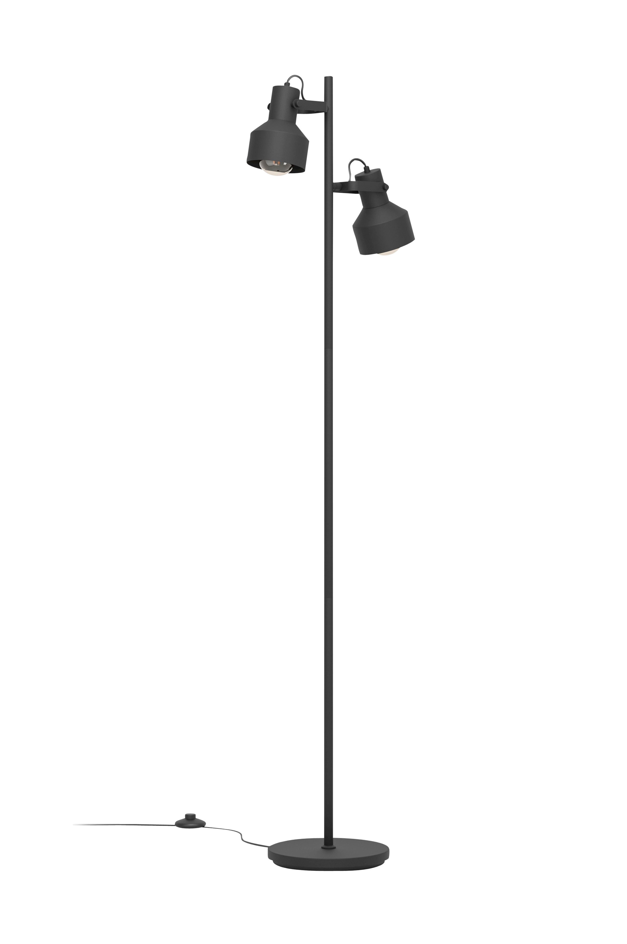 Golvlampan casibare har en svart metallbas och två justerbara lamphuvuden i svart stål med en industriell design. Golvlampan kan tändas och släckas med hjälp av en inbyggd golvbrytare. Med sin monokroma design smälter golvlampan sömlöst in i moderna interiörer och ger snygg arbetsbelysning för läsning eller arbete. De justerbara lamphuvudena gör att du kan rikta ljuset för att accentuera enskilda områden i ditt utrymme, oavsett om det är i vardagsrummet, sovrummet eller matsalen. Produkten har e27-lamphållare och kräver 2 x e27-glödlampor, som inte ingår.
