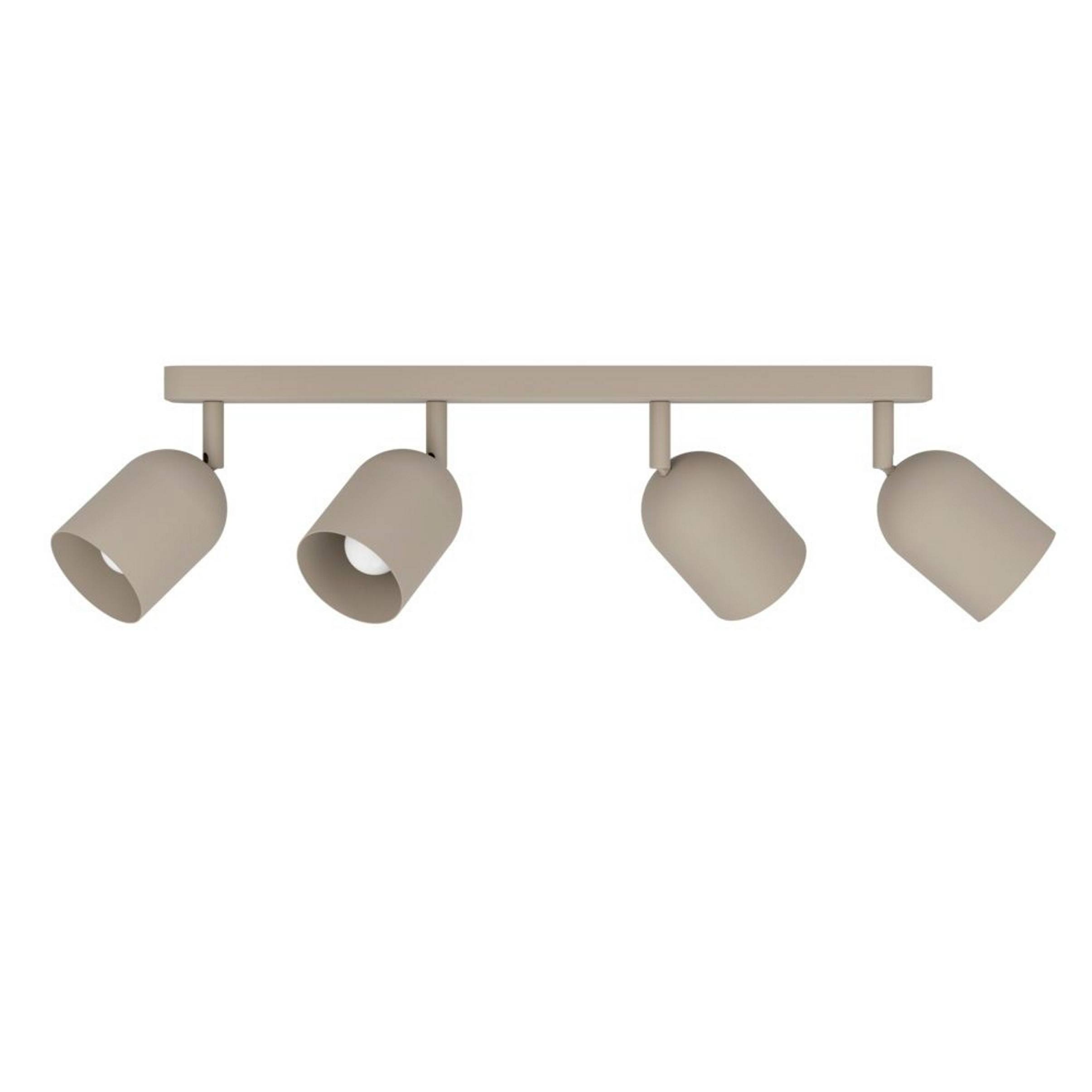 Med takspotlighten tilston får du en modern stil i ditt hem. Armaturen består av fyra cylindriska metallskärmar i sandfärg som är jämnt fördelade längs en långsträckt monteringsbas. Varje skärm kan vridas och lutas individuellt, vilket gör det möjligt att skapa riktade ljusaccenter och belysa olika delar av ett rum. Den återhållsamma designen med matt finish smälter harmoniskt in i både minimalistiska och skandinaviska inredningsstilar. Barspotlighten är utrustad med fyra e14-socklar, vilket möjliggör fritt val av glödlampor - från varmvitt ljus till dimbara varianter. Oavsett om det är i hallen, vardagsrummet eller köket: tilston ger funktionell och elegant belysning.