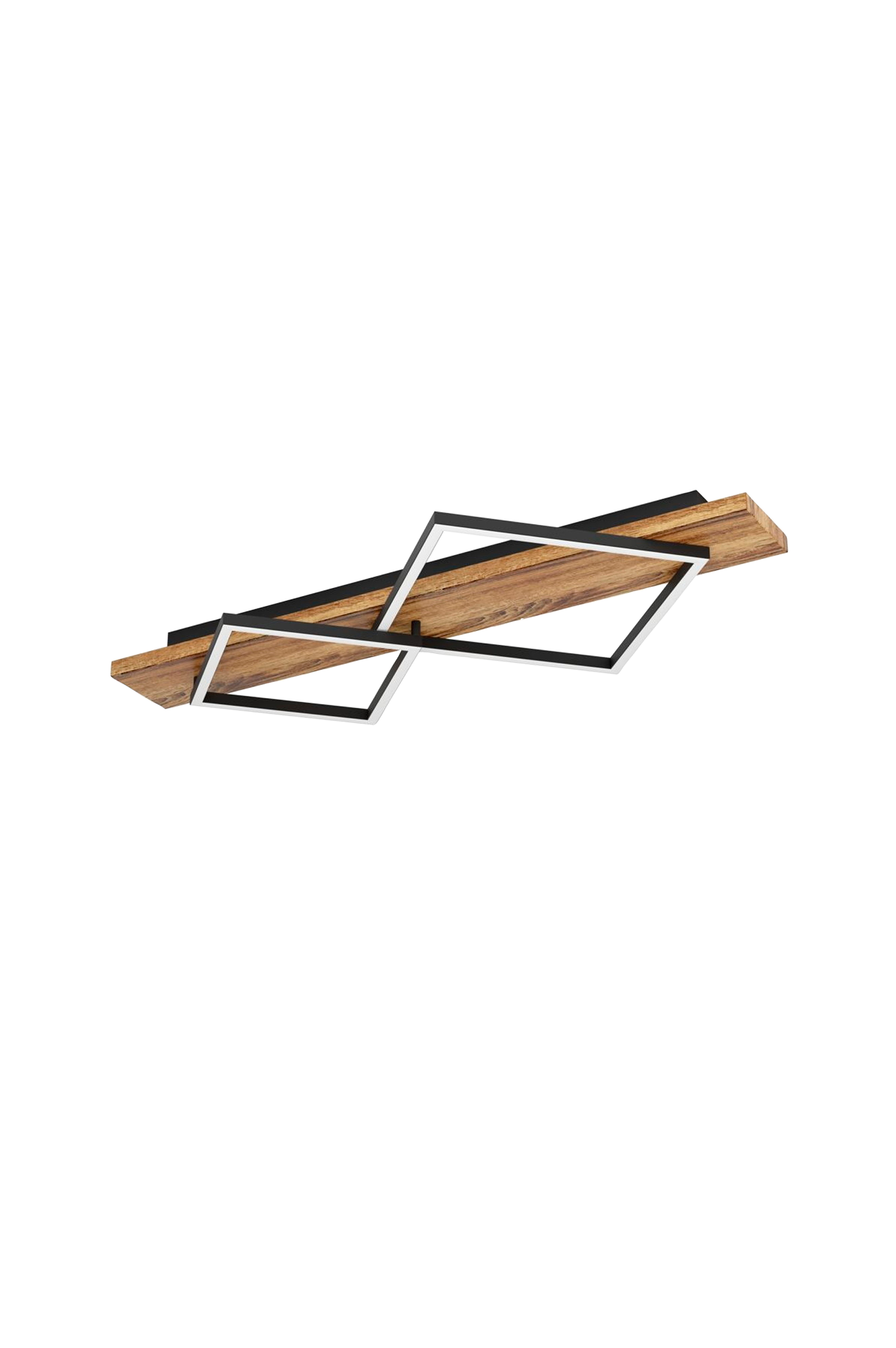 boyal led taklampa ger en modern lantlig stil till taket med sin distinkta kombination av rustik trädekor och svart metall. Två kvadratiska ljusramar korsar varandra över ett långsträckt träelement och skapar en spännande ljusstruktur med ett grafiskt tilltal. Lysdioderna ger ett behagligt, jämnt ljus och ger en snygg allmänbelysning i vardagsrum, matplats eller hall. Den varmvita ljusfärgen skapar en mysig atmosfär. Boyal imponerar inte bara visuellt med sin materialmix utan också med sin smala design - perfekt för rum med låg takhöjd. En harmonisk armatur för dig som värdesätter både naturlighet och design.