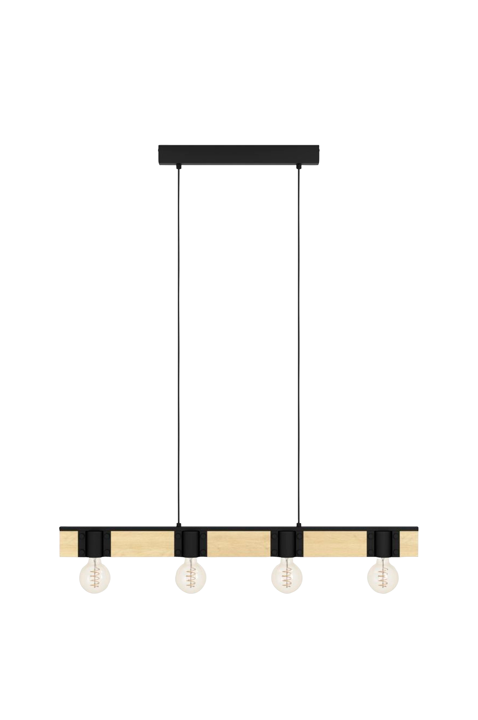 Taklampan bailrigg har en rektangulär balk i lövträ och fyra eleganta svarta integrerade metallamphållare. Med sin naturliga och minimalistiska design smälter den moderna pendellampan sömlöst in i alla inredningsstilar. Den unika kombinationen av trä och metall gör den här moderna taklampan till ett utmärkt tillskott i alla rum. Den avbildade glödlampan ingår inte. Produkten har e27-lamphållare och kräver e27-glödlampor.