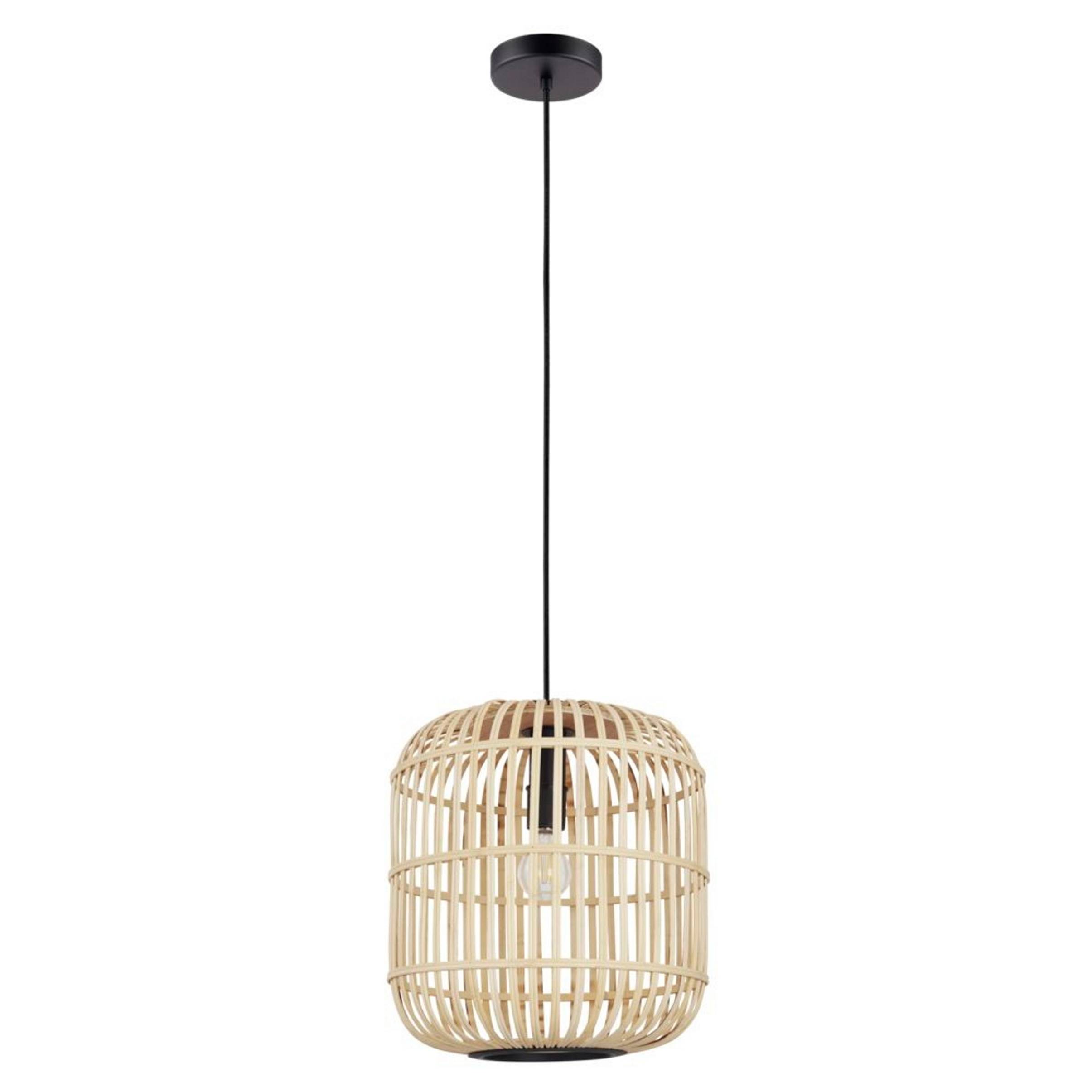 Pendellampan bordesley har en lampskärm tillverkad av naturlig bambu och ett svart metallfäste. Lampskärmen skapar ett fascinerande ljus- och skuggspel så snart lampan tänds. Pendellampan smälter sömlöst in with den aktuella "natur"-trenden och skapar en tilltalande atmosfär with sina naturliga material. Den ger en distinkt belysning för alla utrymmen, oavsett om det är i vardagsrummet eller ovanför bordet i matsalen. Produkten kräver 1 x e27 glödlampa, som inte ingår.