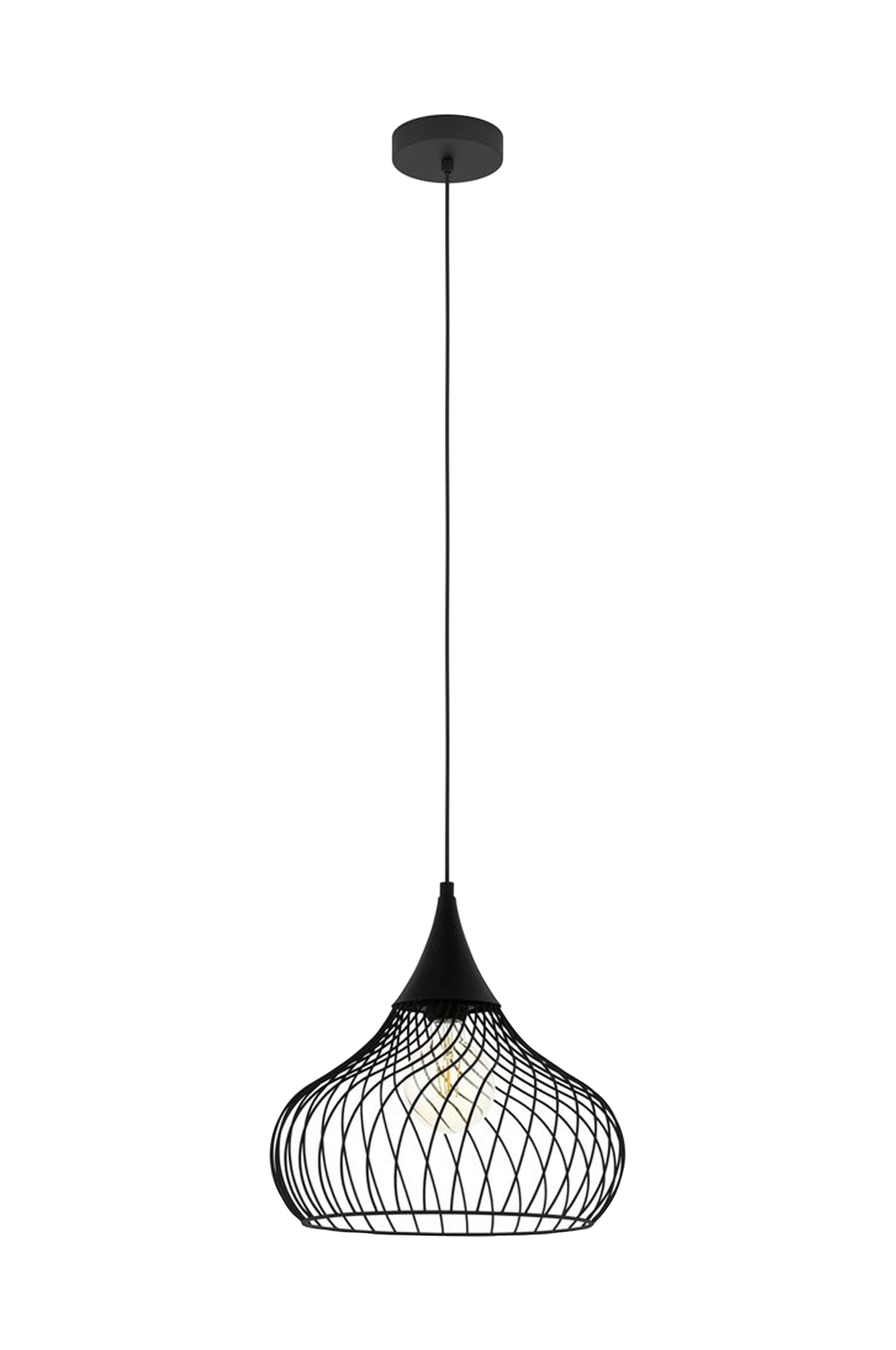 Pendellampan staverton har en lampskärm i svart ståltråd. Den dekorativt böjda trådlampskärmen skapar ett fascinerande ljus- och skuggspel så snart lampan tänds. Lampskärmens mjuka spiraldesign gör att produkten passar perfekt in i moderna interiörer, oavsett om det är i vardagsrummet eller ovanför bordet i matsalen. Den avbildade glödlampan ingår inte. Produkten har en e27-lamphållare och kräver en e27-glödlampa.
