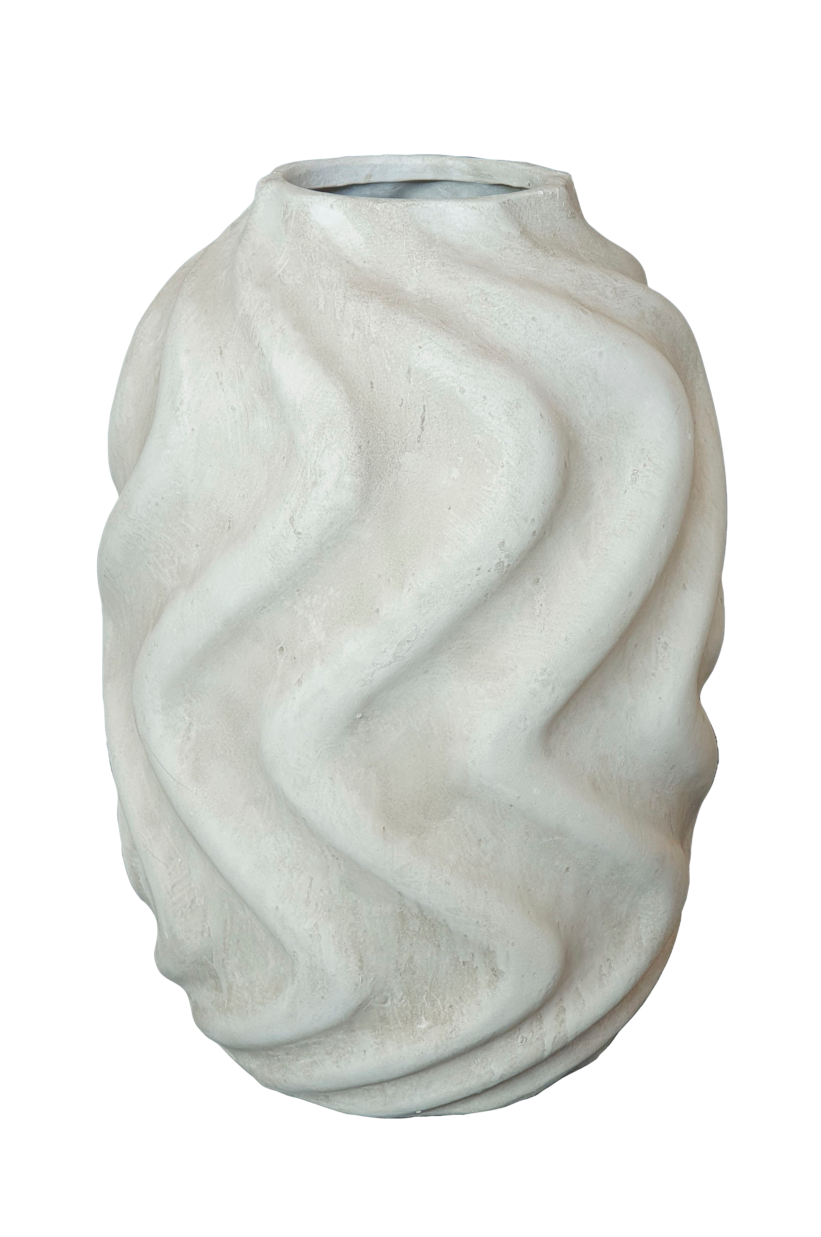 Vas med vågigt mönster i terracotta, höjd 40cm. Torkas av med en fuktig trasa. Varje föremål är handgjort och unikt. Lergods är ett naturligt poröst material och kan läcka, använd gärna med en bricka eller placera på vattentäta ytor.