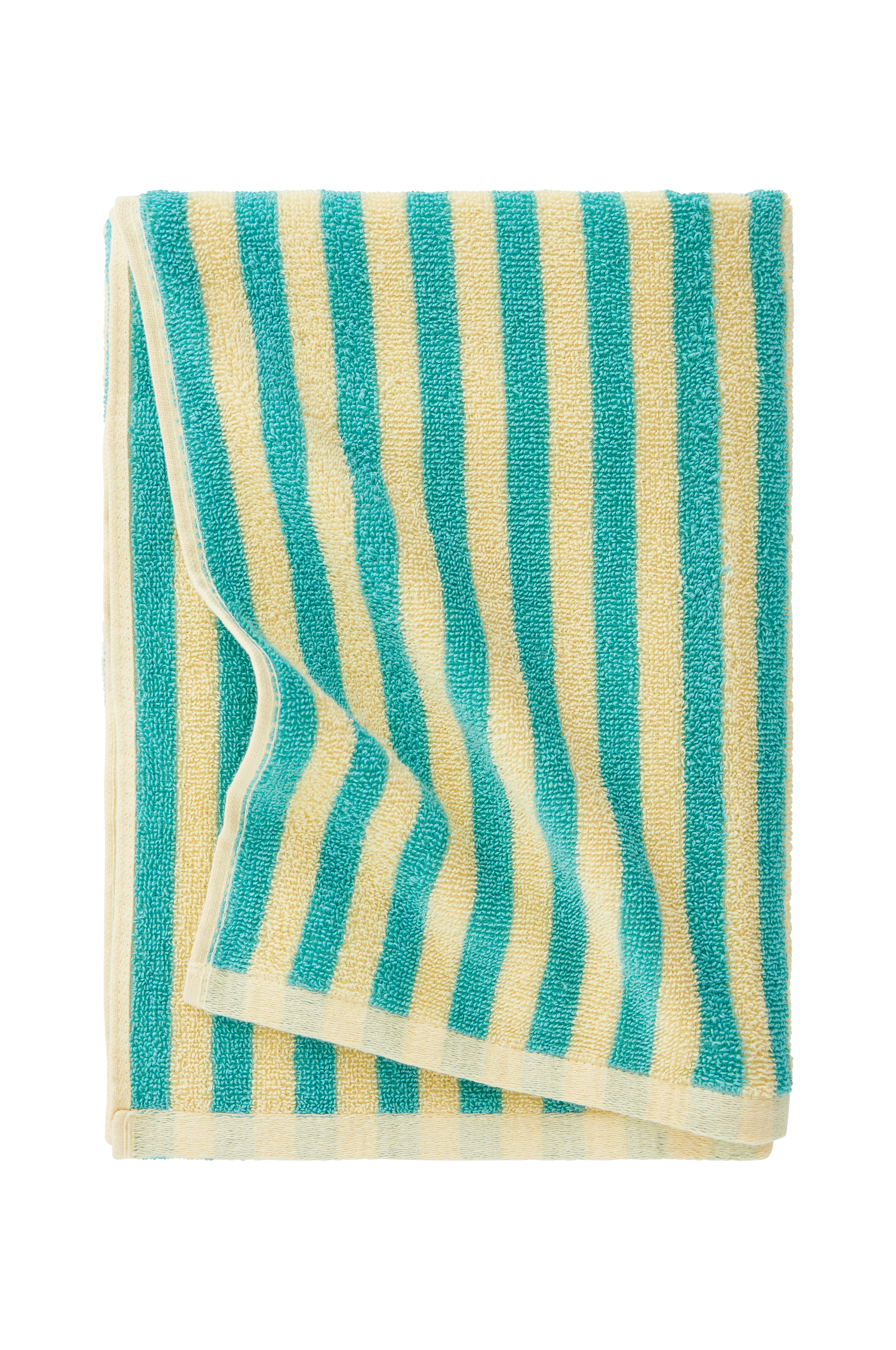 Badhandduk i mjuk och skön bomullsfrotté med garnfärgade ränder. Stl 70x140 cm.
