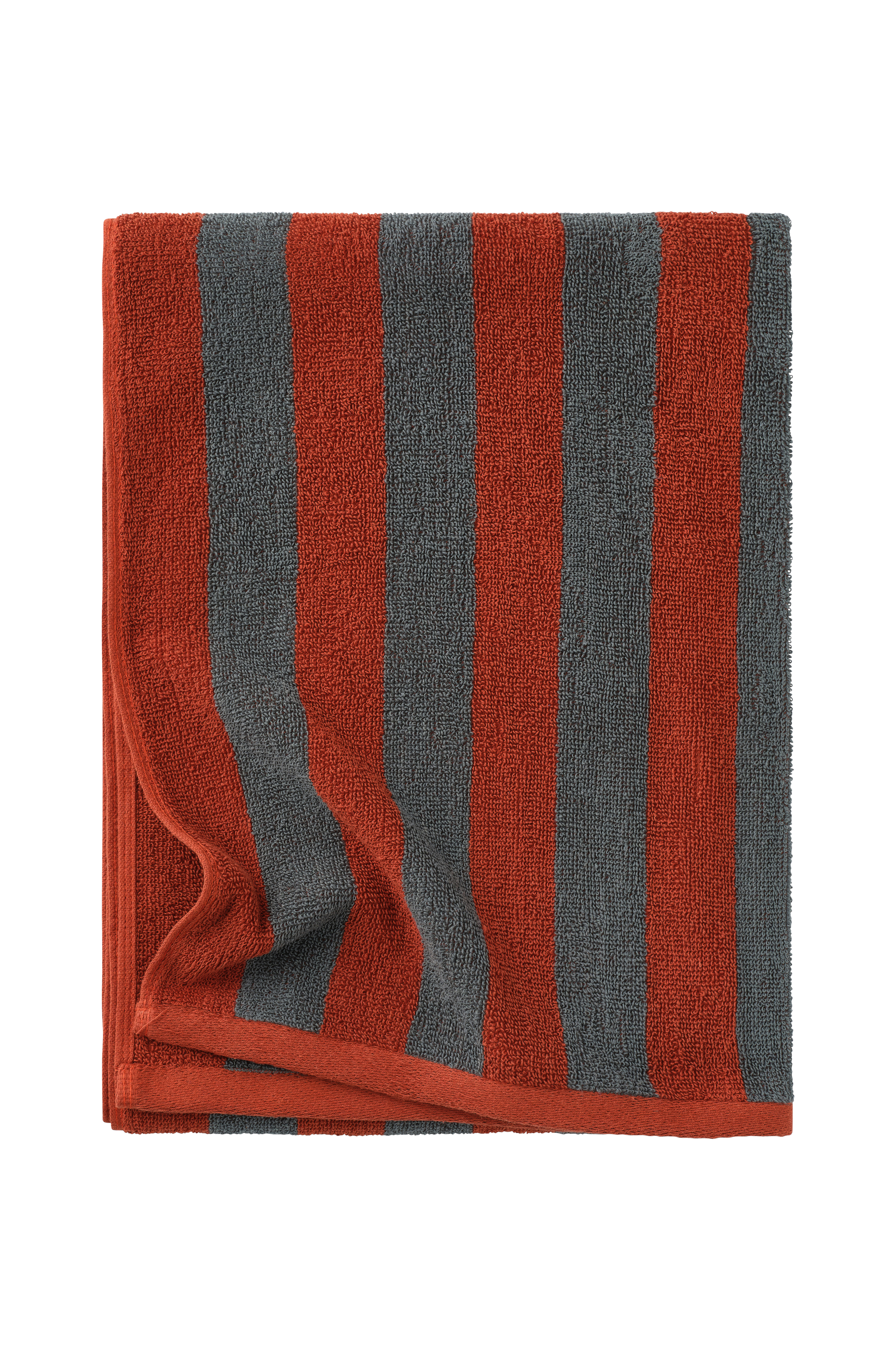 Badhandduk i mjuk och skön bomullsfrotté med garnfärgade ränder. Stl 70x140 cm.