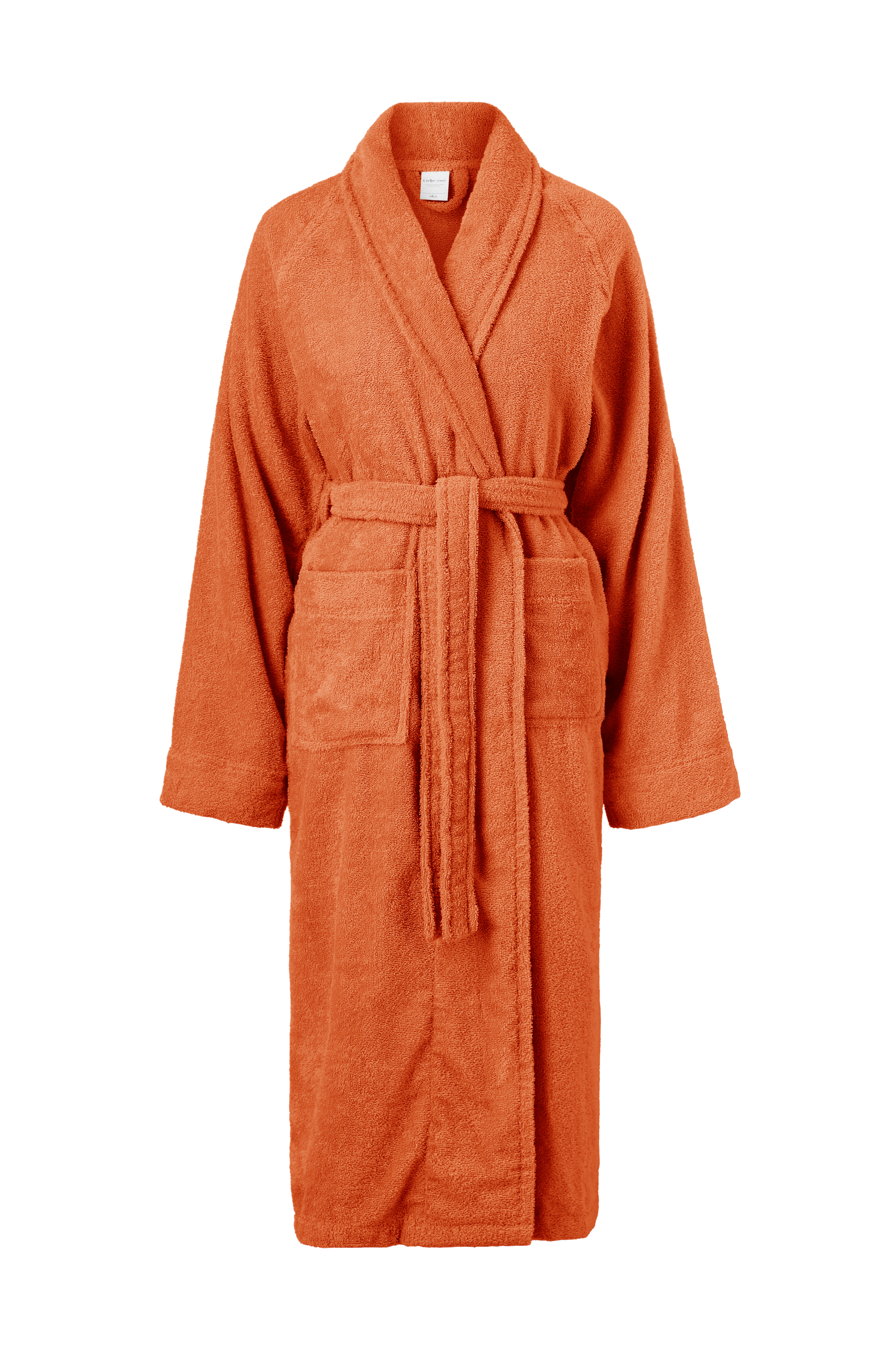 Badrock av 100% bomullsfrotté med krage, två fickor och knytskärp. Längd 120 cm i stl 38/40.
